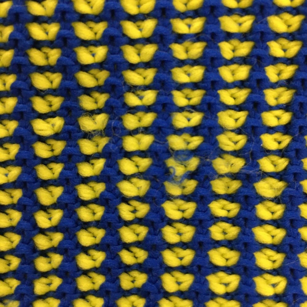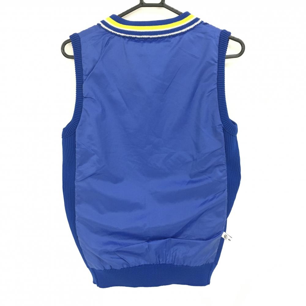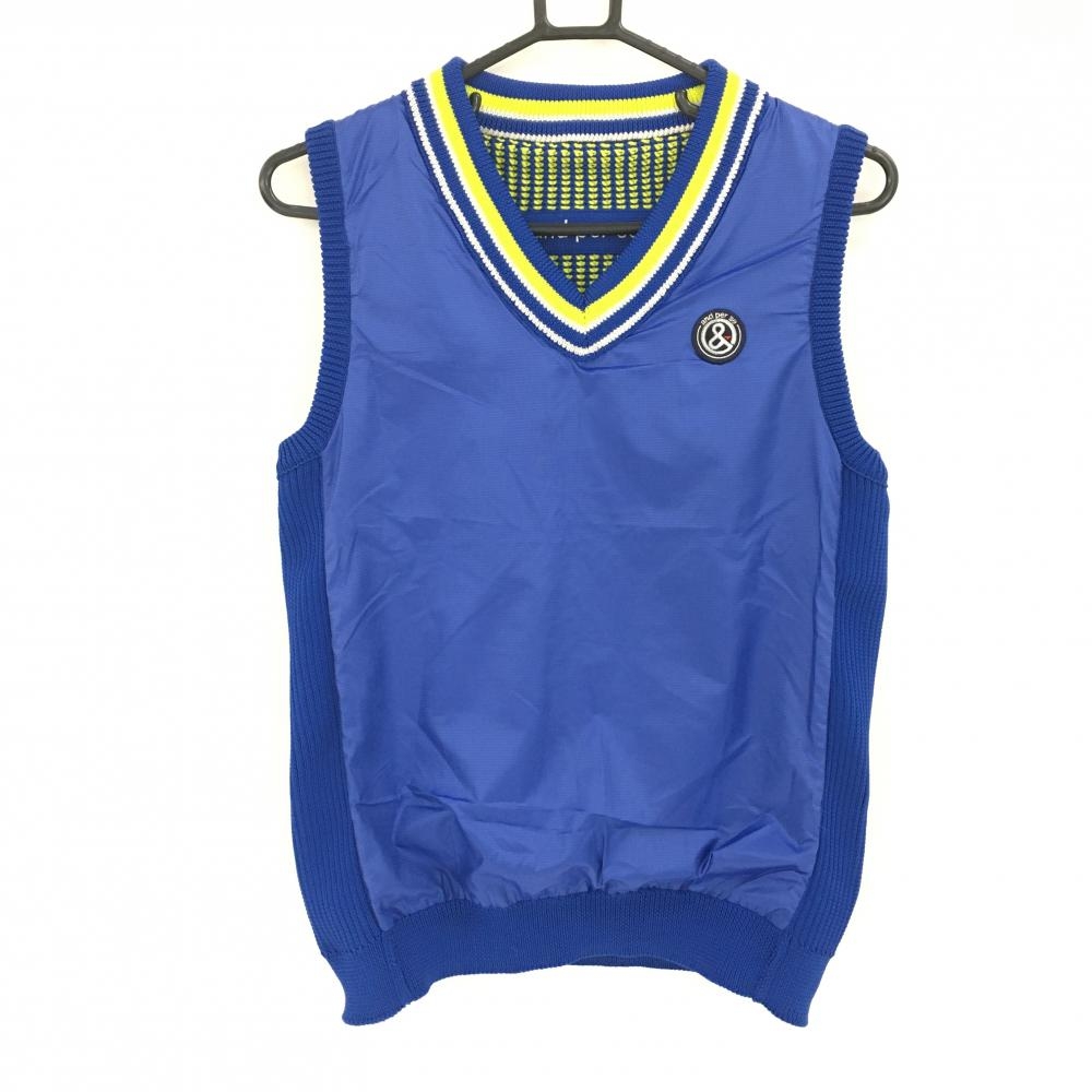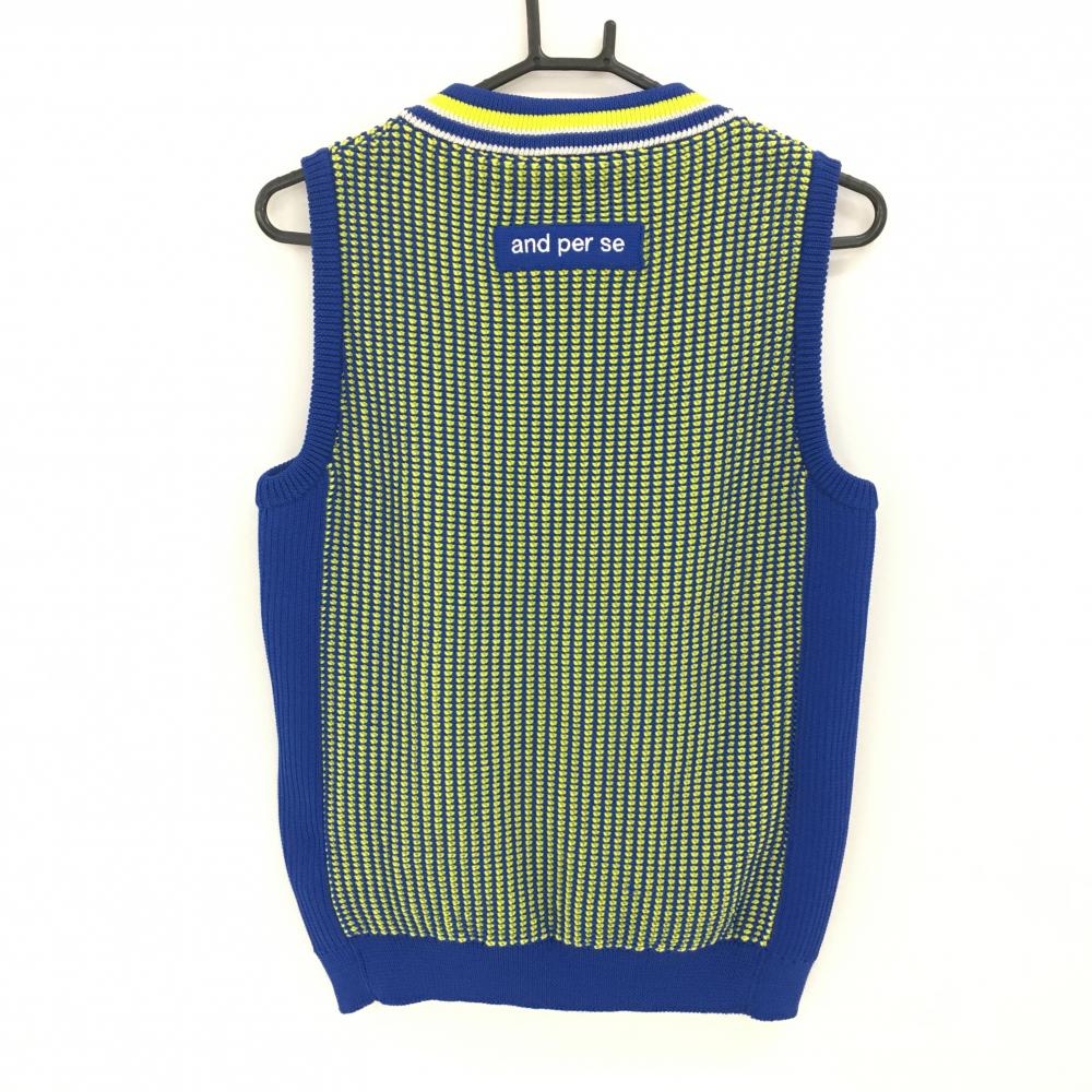 【超美品】アンパスィ リバーシブルニットベスト ブルー×イエロー 胸元ロゴ Vネック 異素材 レディース L ゴルフウェア and per se