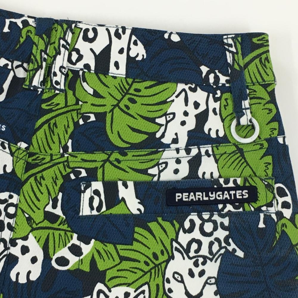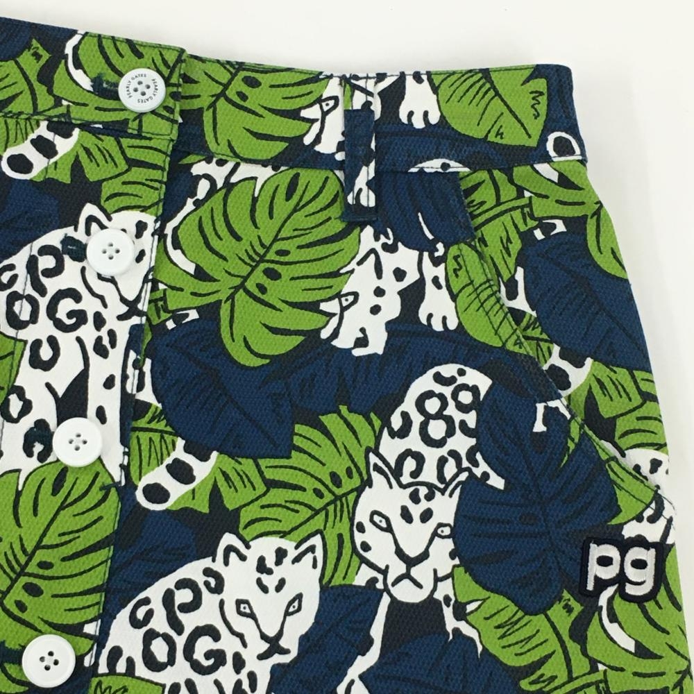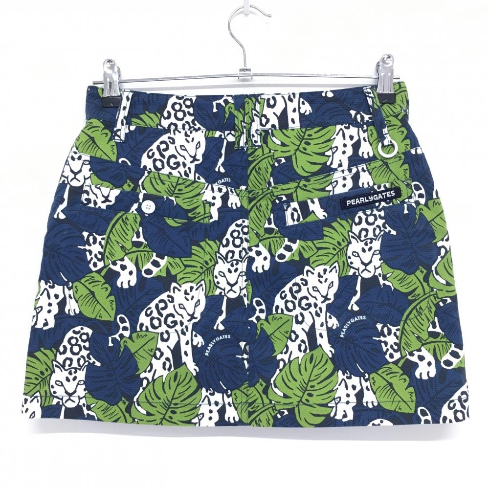 【美品】パーリーゲイツ スカート ライトグリーン×ネイビー リーフ柄 ヒョウ柄 レオパード レディース 00(XS) ゴルフウェア PEARLY GATES