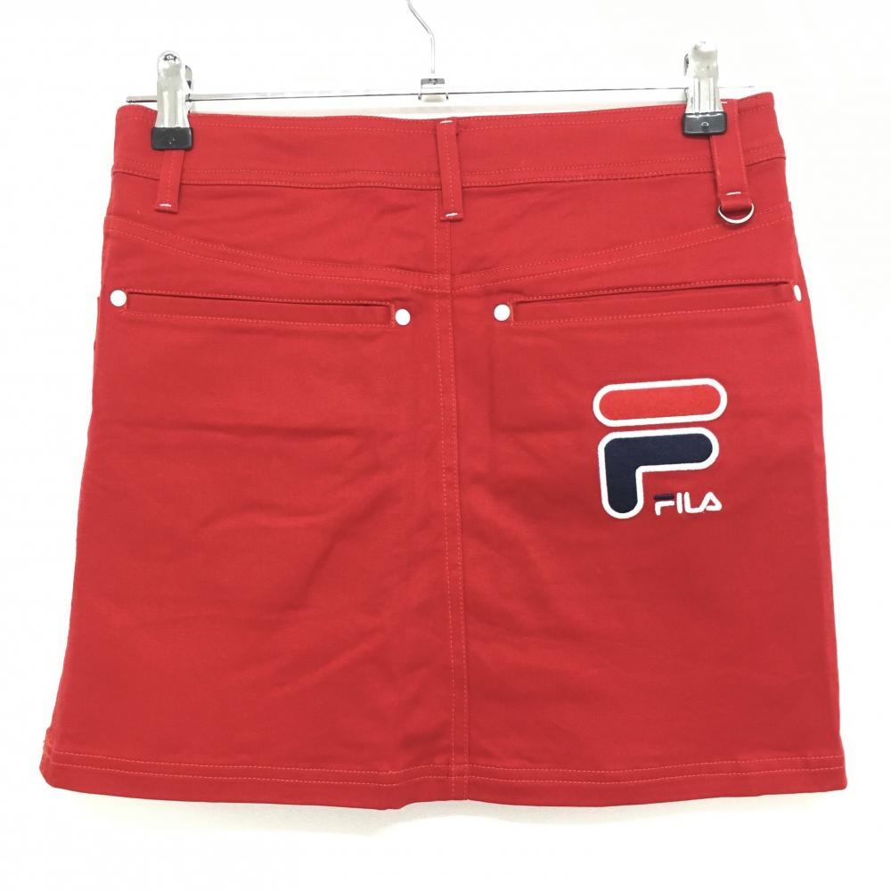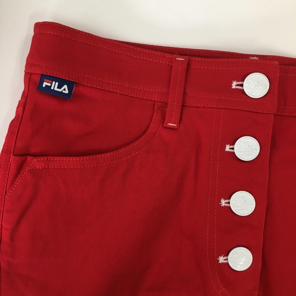 【超美品】フィラゴルフ スカート レッド×白 前ボタン ストレッチ レディース S ゴルフウェア FILA GOLF