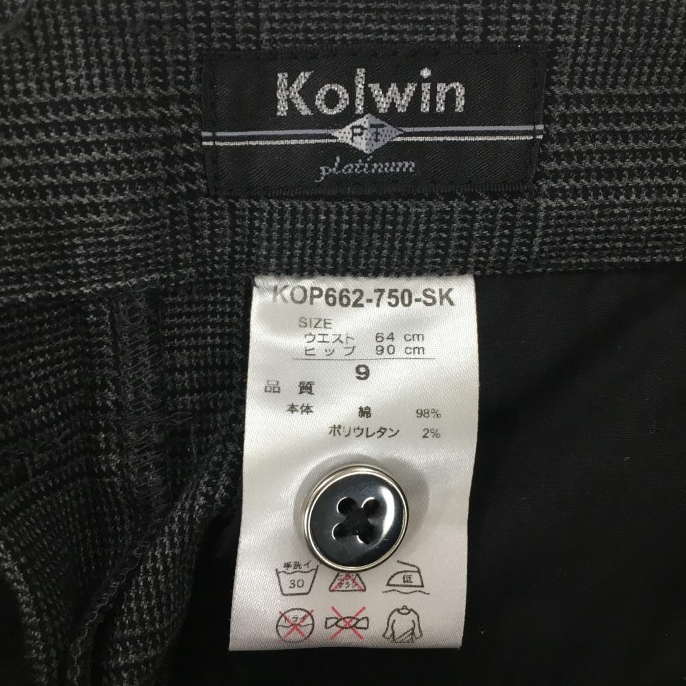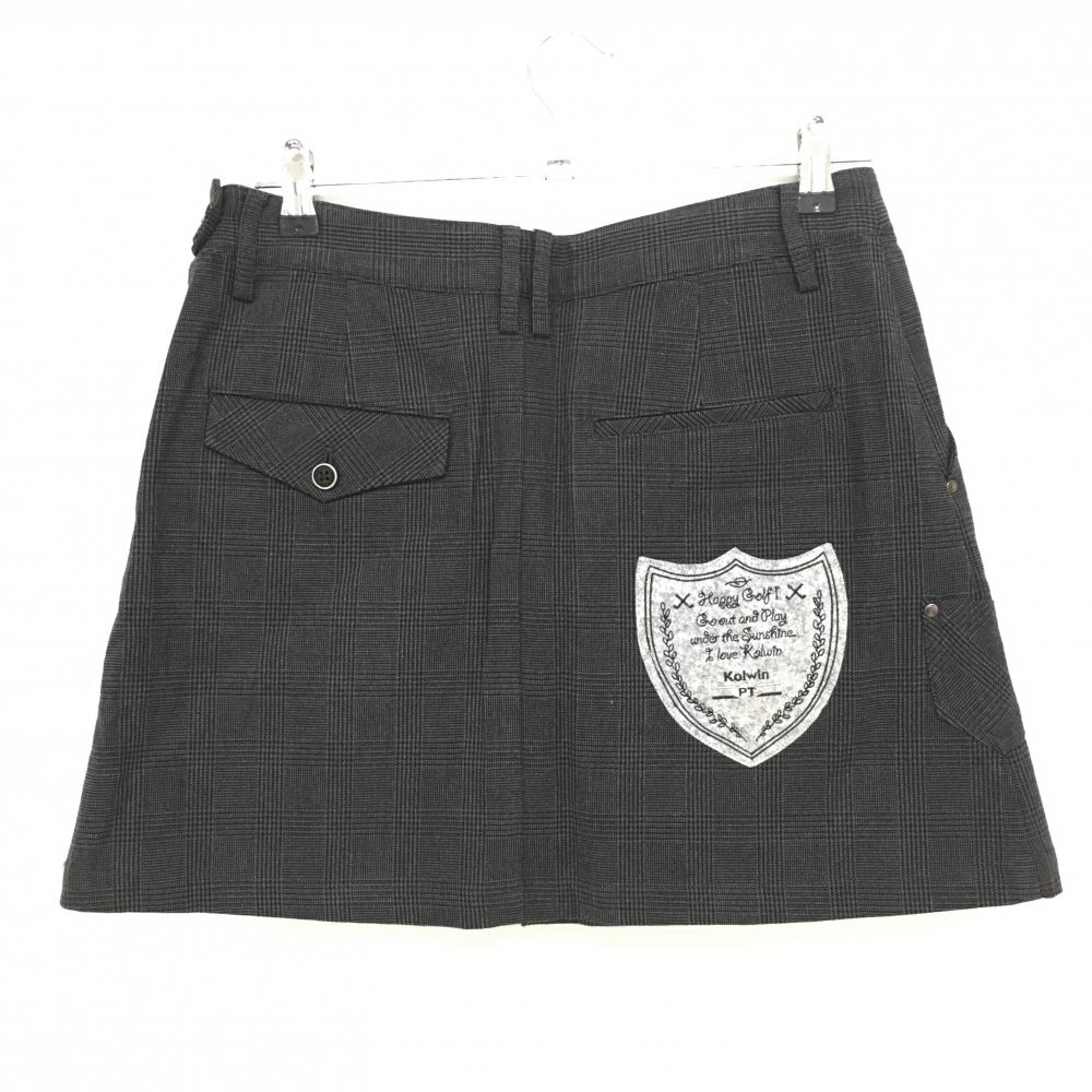 【超美品】コルウィン スカート グレー×黒 グレンチェック ティー装着可 レディース 9(M) ゴルフウェア Kolwin