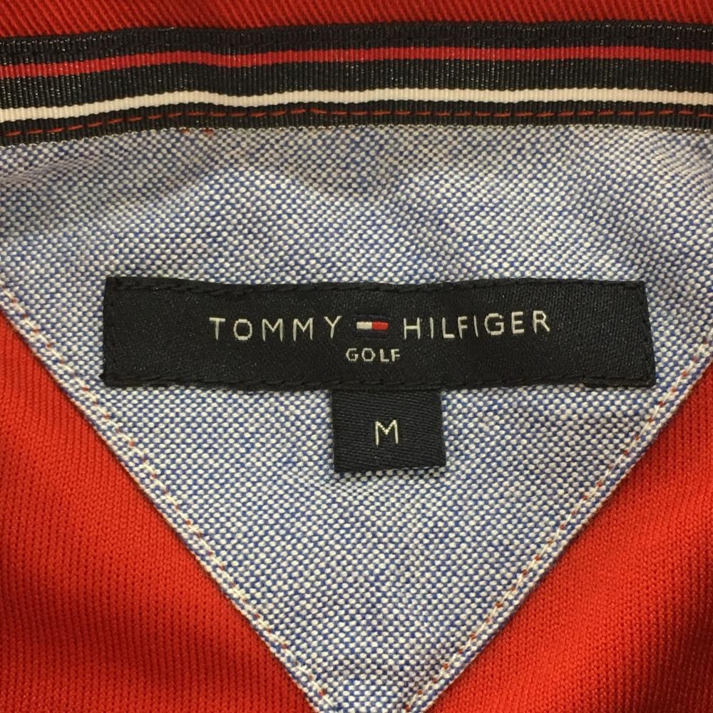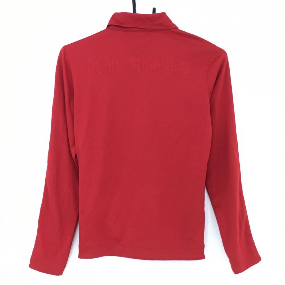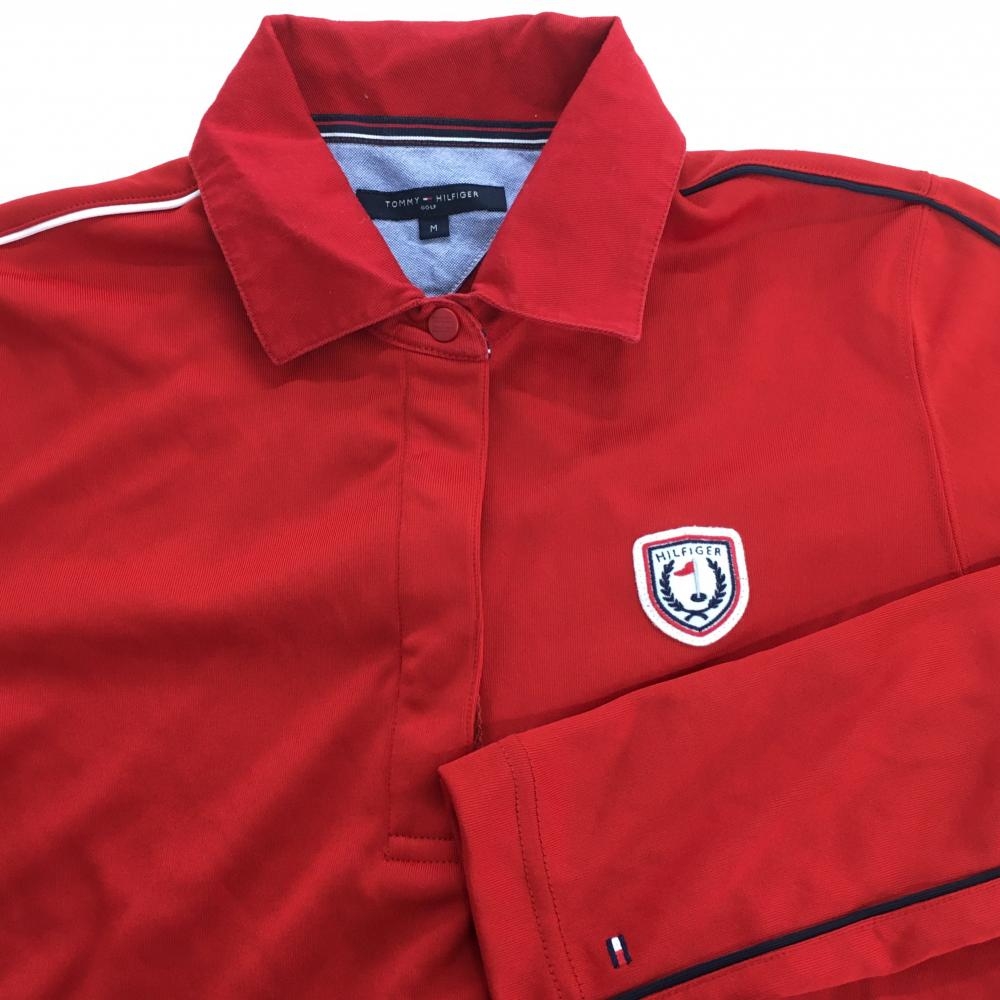 【超美品】トミーヒルフィガー 長袖ポロシャツ レッド 袖パイピングライン 胸ワッペン レディース M ゴルフウェア Tommy Hilfiger Golf