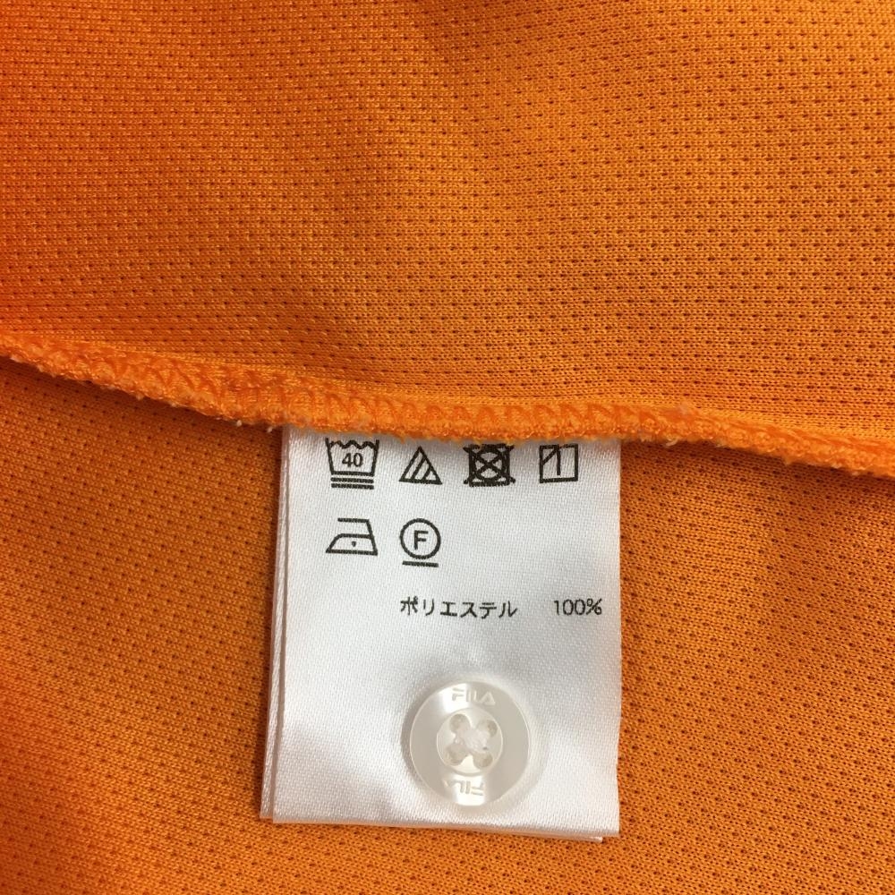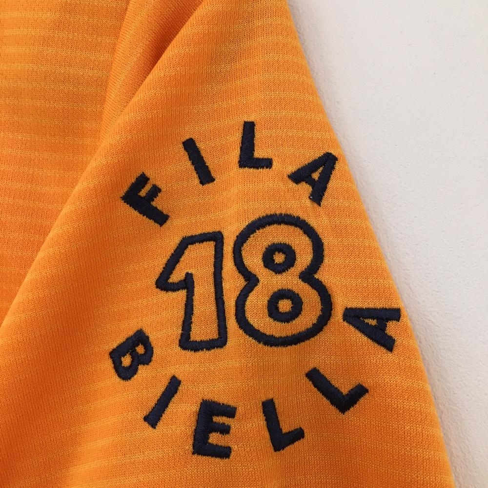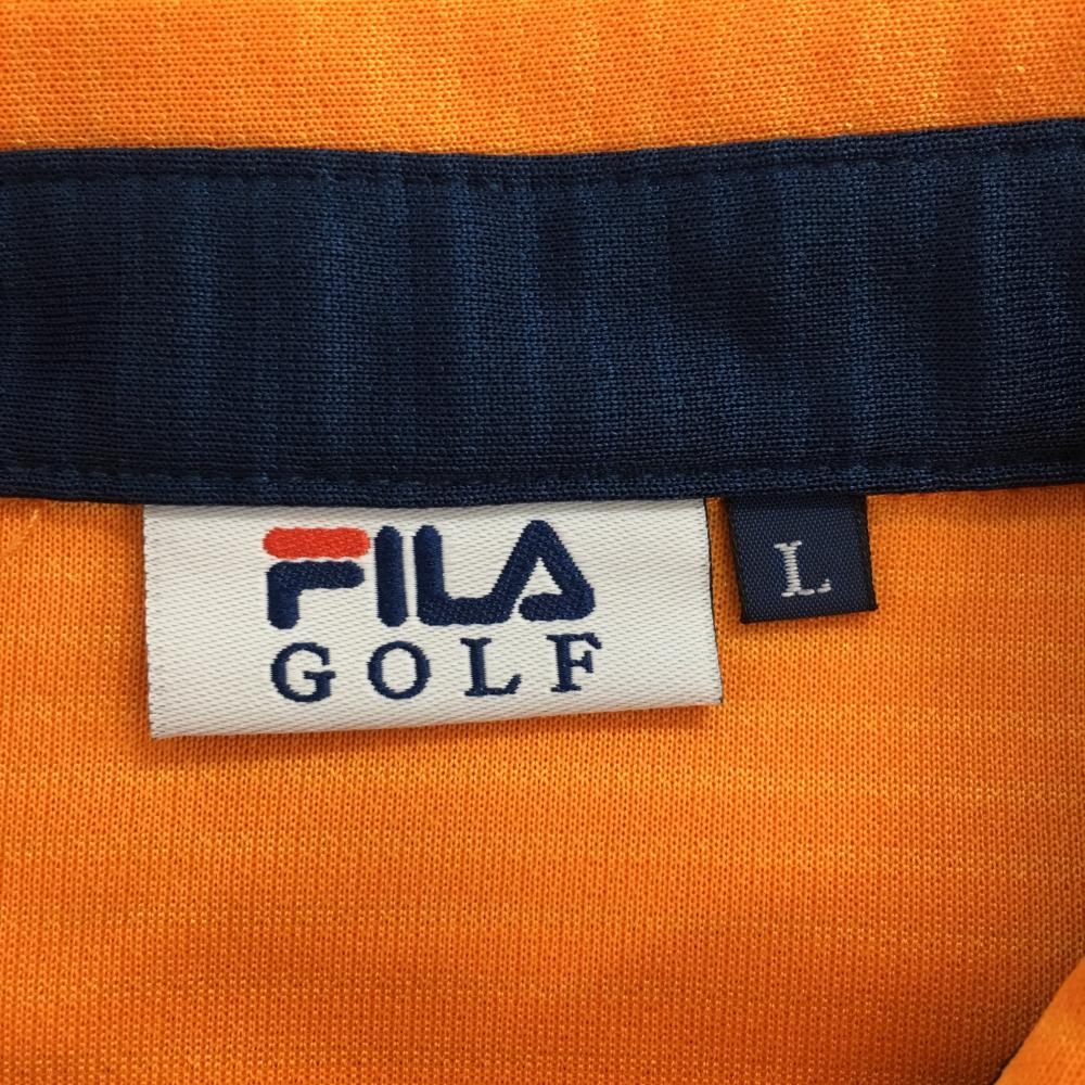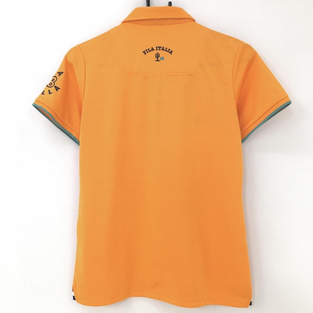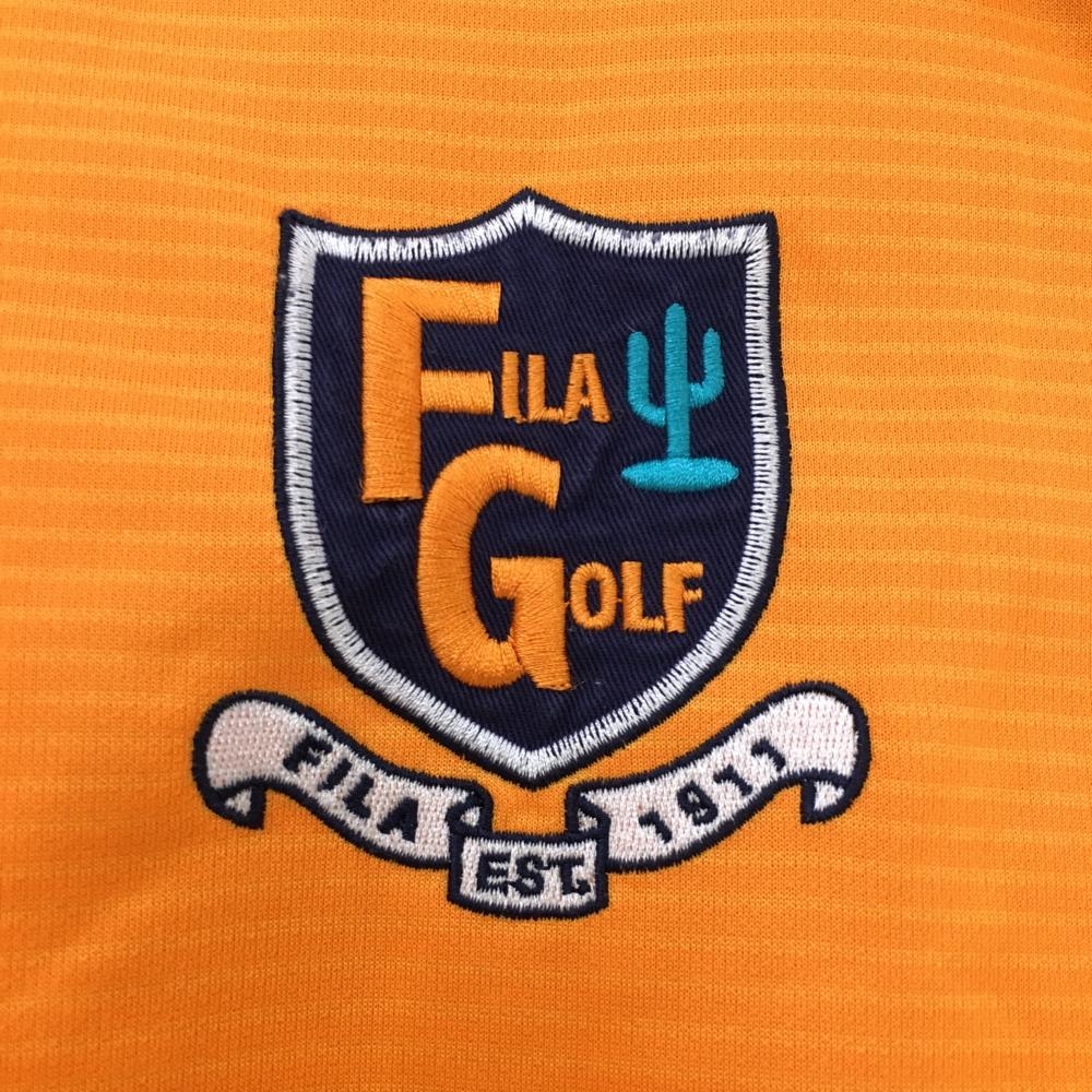 【超美品】フィラゴルフ 半袖ポロシャツ オレンジ×ネイビー ボーダー柄 ロゴ刺しゅう レディース L ゴルフウェア FILA GOLF