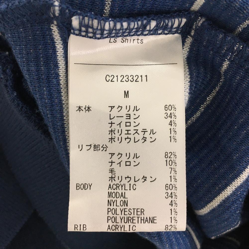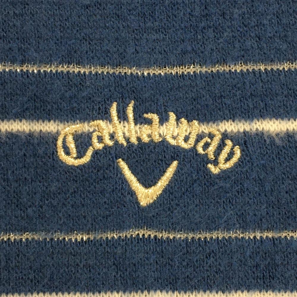キャロウェイ 長袖ハイネックシャツ ネイビー×白 ボーダー 表微起毛 ラメ糸 レディース M ゴルフウェア Callaway