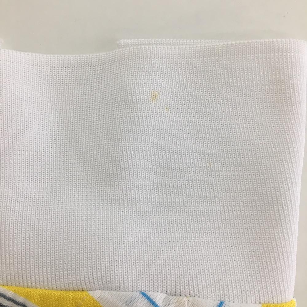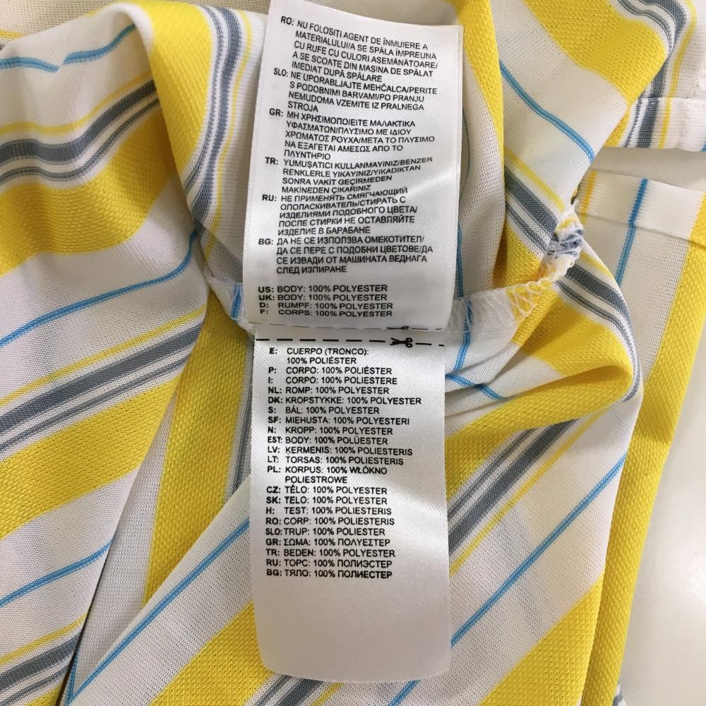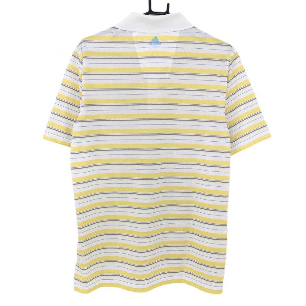 【美品】アディダス 半袖ポロシャツ 白×イエロー ランダムボーダー 胸元刺しゅう メンズ S ゴルフウェア adidas