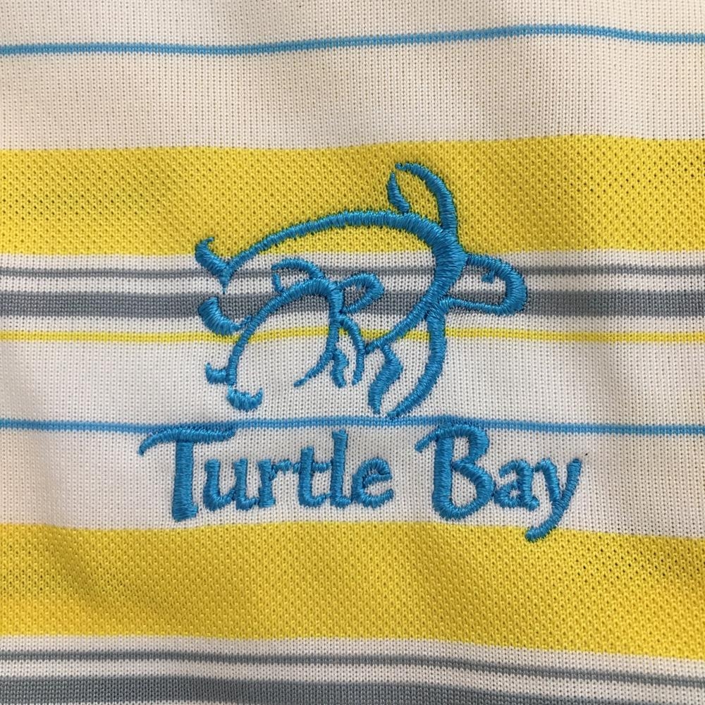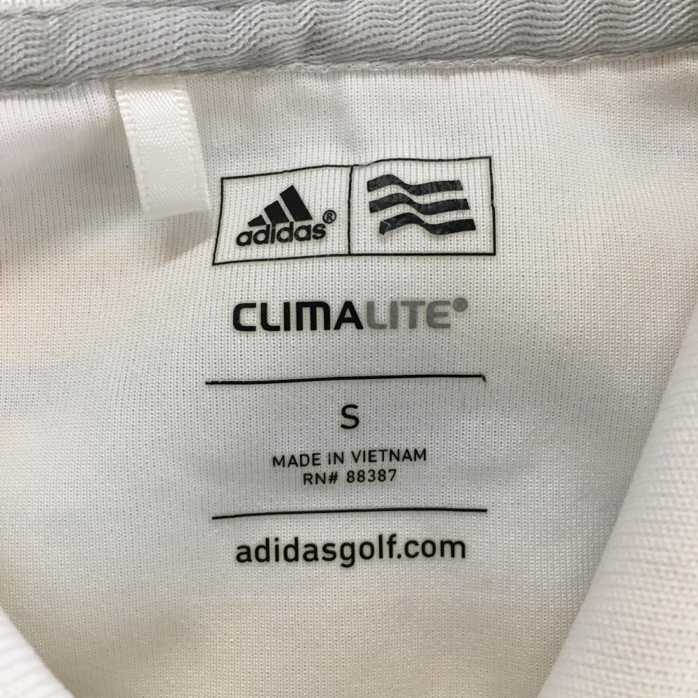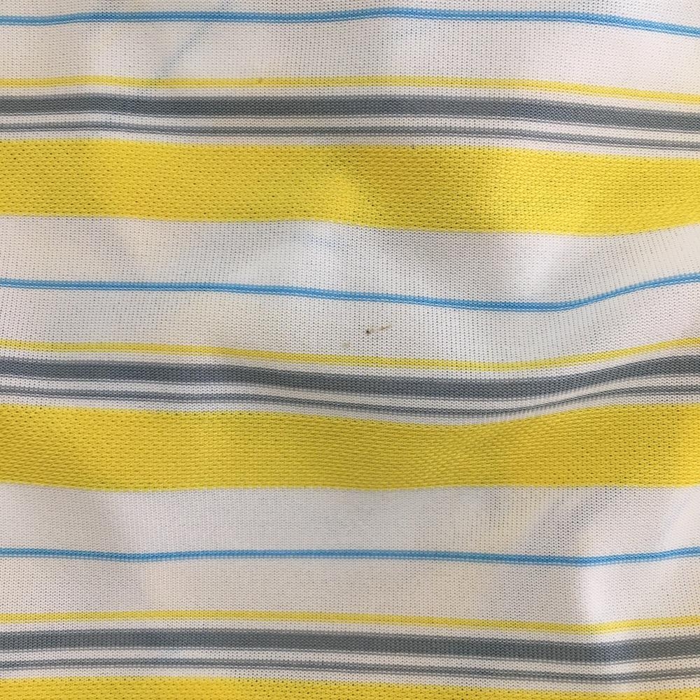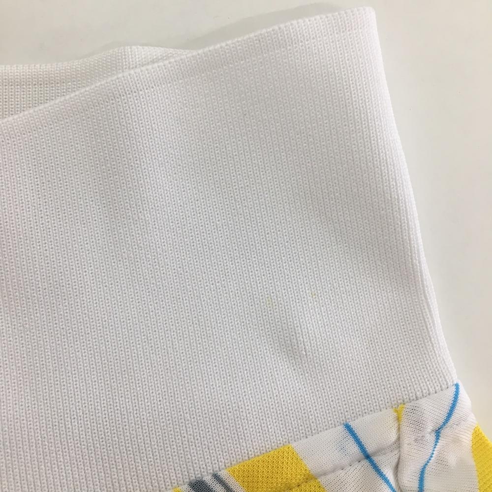 【美品】アディダス 半袖ポロシャツ 白×イエロー ランダムボーダー 胸元刺しゅう メンズ S ゴルフウェア adidas