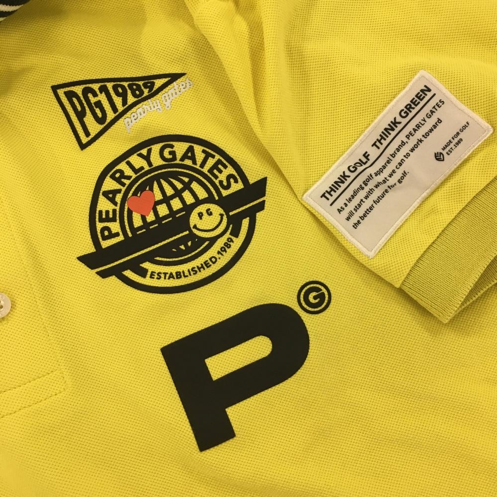 【美品】パーリーゲイツ 半袖ポロシャツ イエロー×黒 ニコちゃん スマイル メンズ 4(M) ゴルフウェア 2022年モデル PEARLY GATES