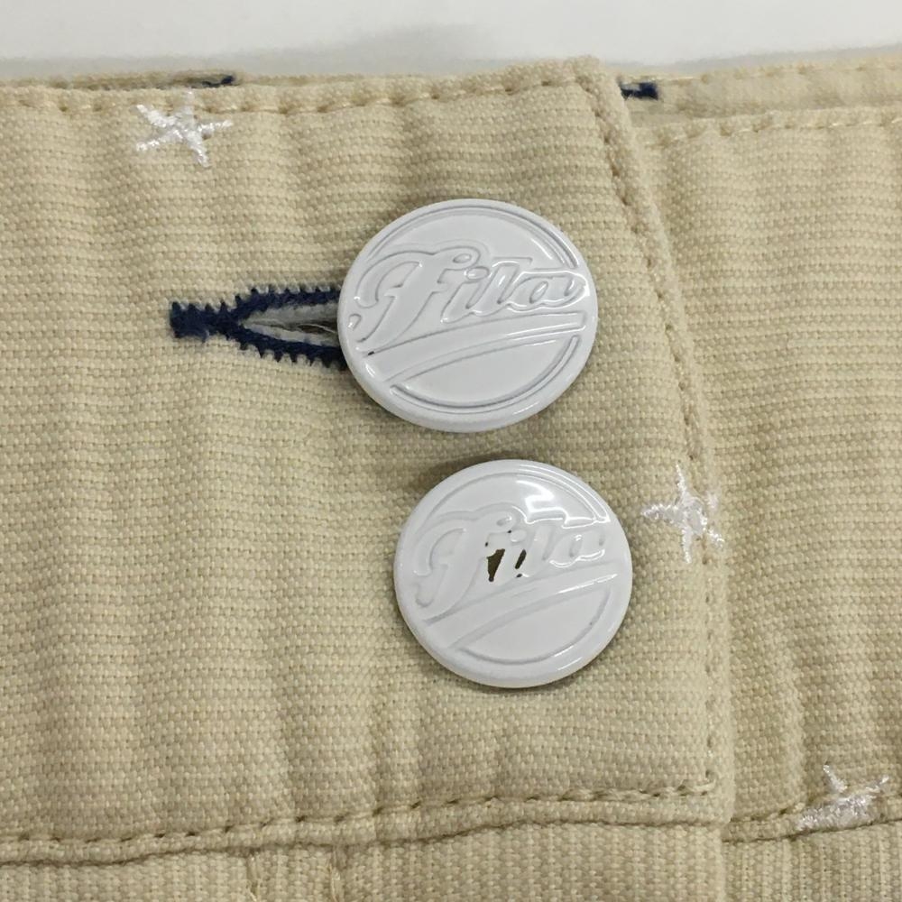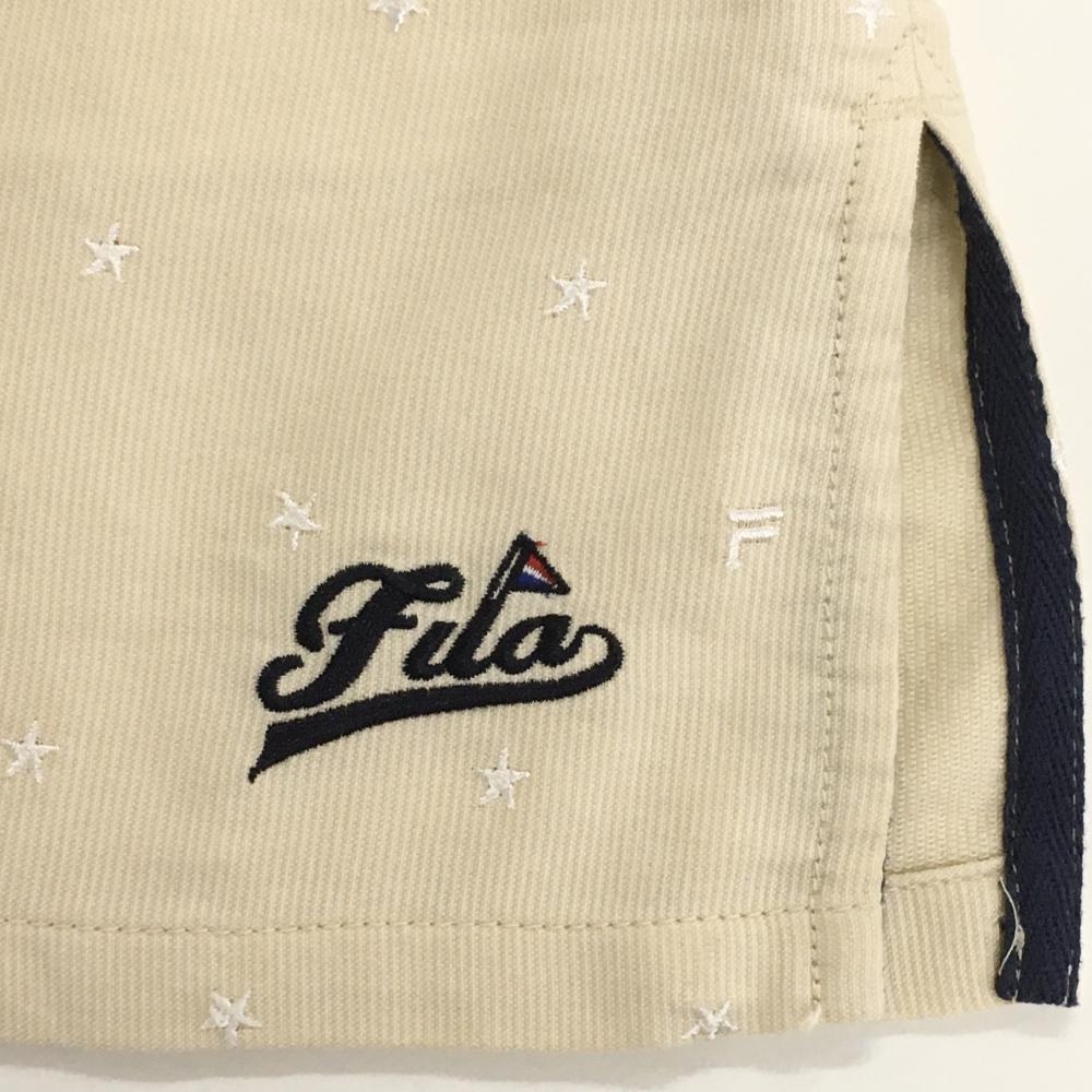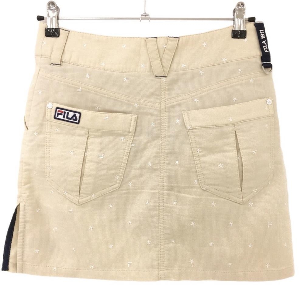 【超美品】フィラゴルフ スカート アイボリー×白 ストライプ織生地 星柄 ロゴ刺しゅう レディース ゴルフウェア FILA GOLF