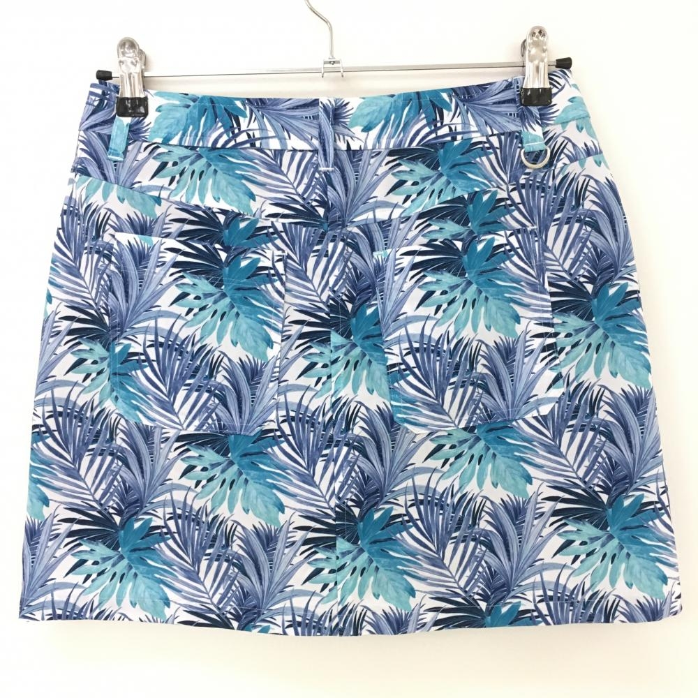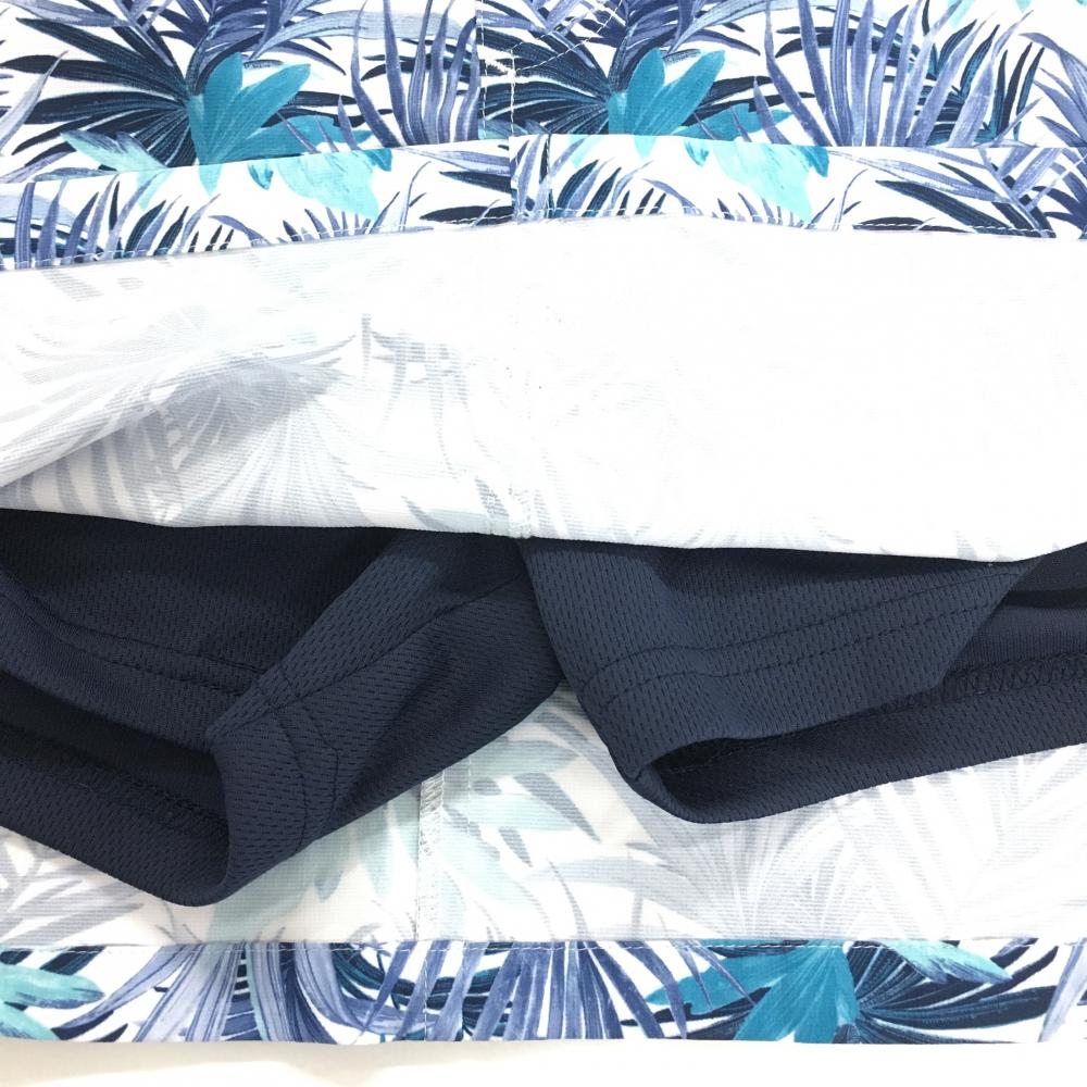 【美品】アドミラル スカート 白×ネイビー リーフ柄 内側インナーパンツ レディース M ゴルフウェア Admiral