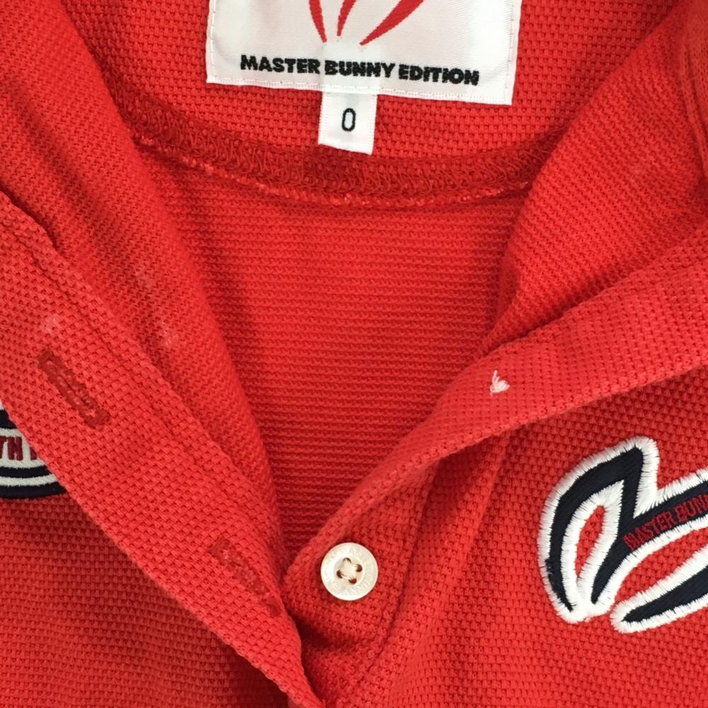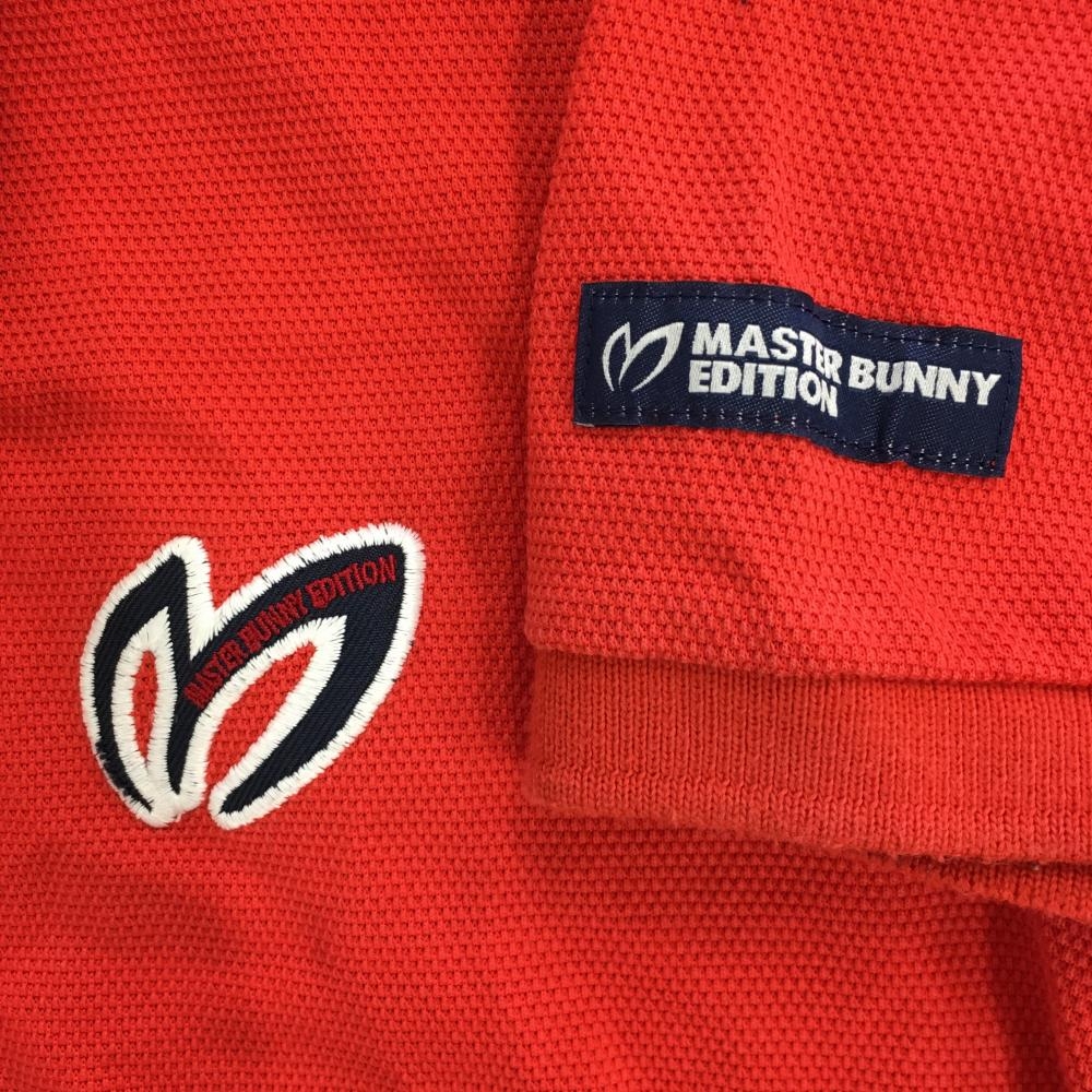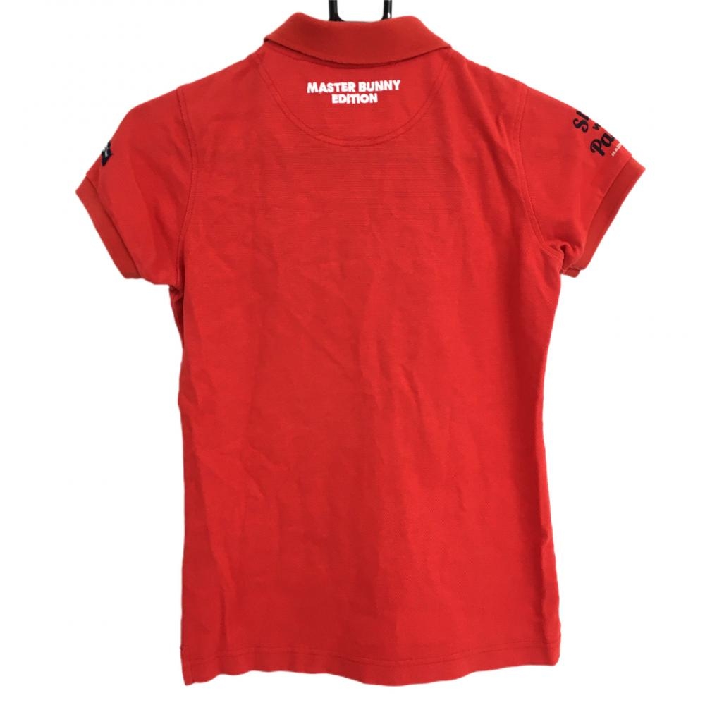 【美品】マスターバニー 半袖ポロシャツ レッド×ネイビー コットン混 日本製 レディース 0(S) ゴルフウェア MASTER BUNNY EDITION