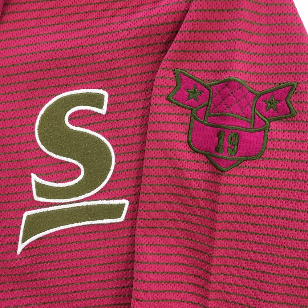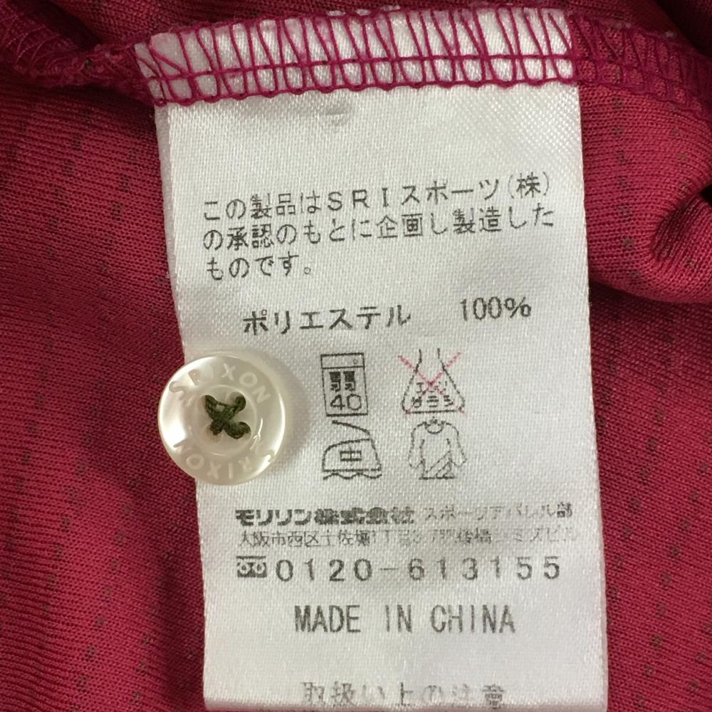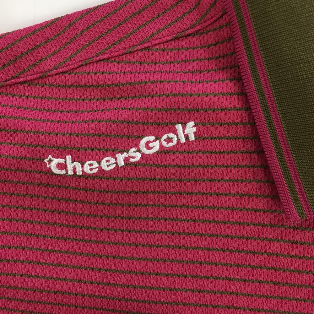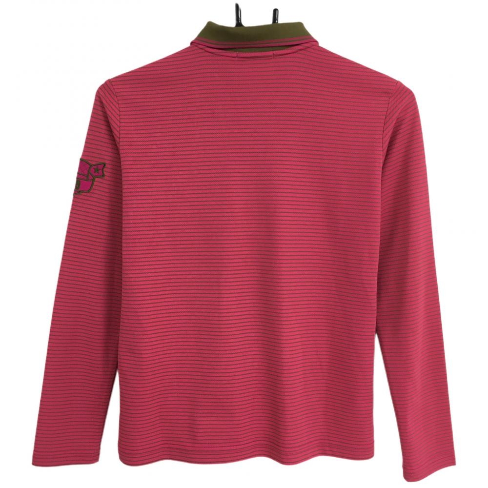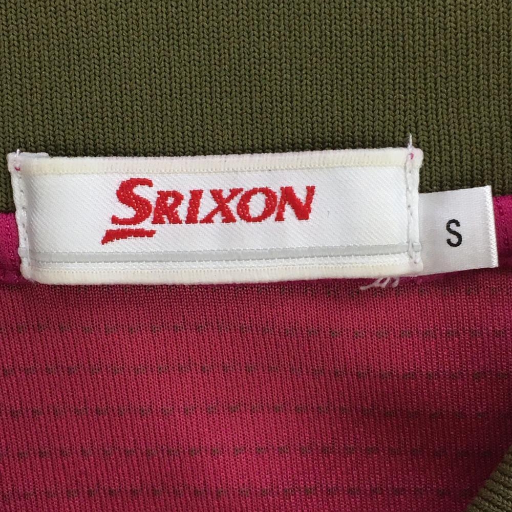 【美品】スリクソン 長袖ポロシャツ ピンク×カーキ ボーダー ワッペン レディース S ゴルフウェア SRIXON