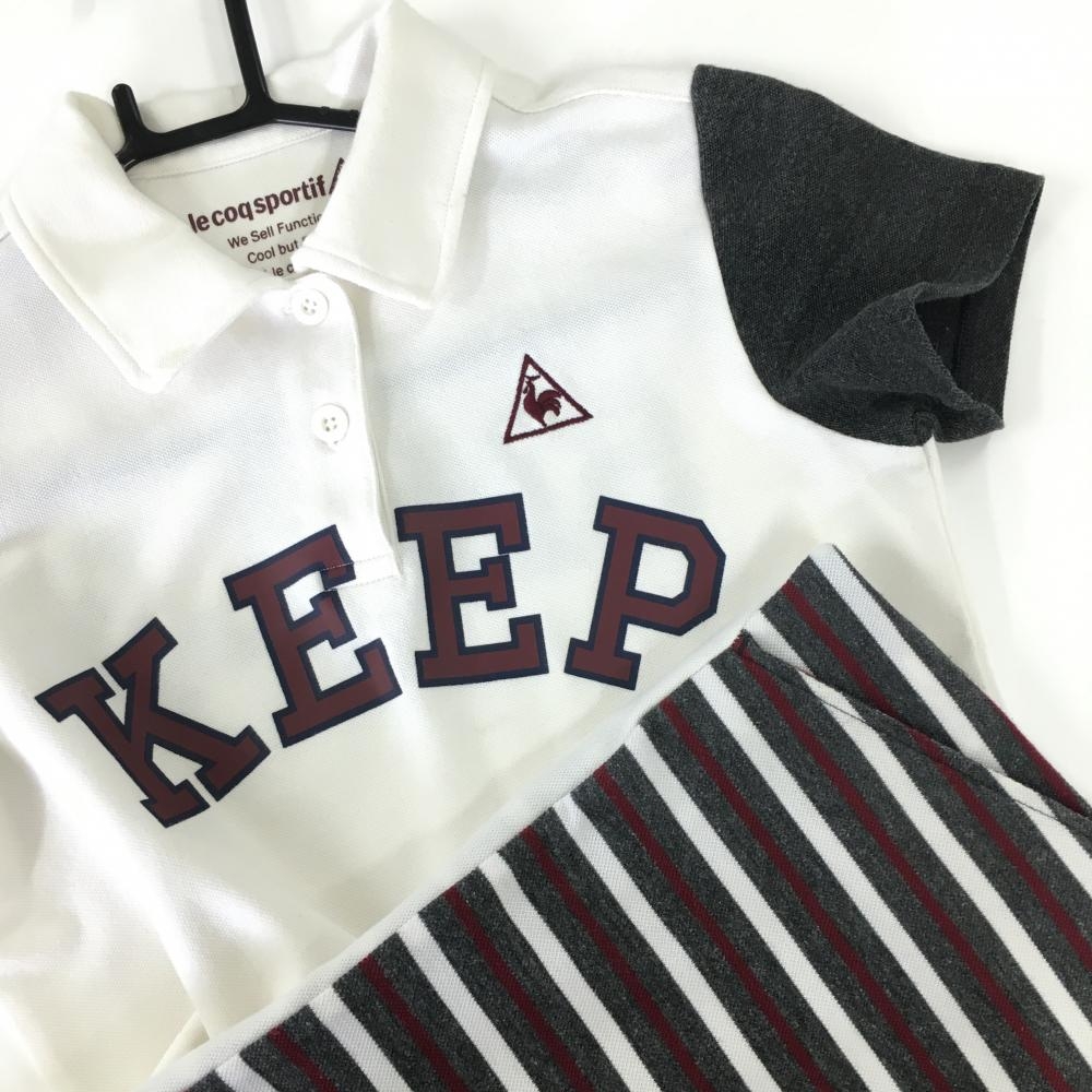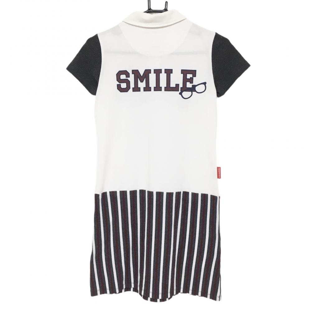 ルコック 半袖ポロワンピース 白×ダークグレー スカート部ストライプ レディース S ゴルフウェア le coq sportif