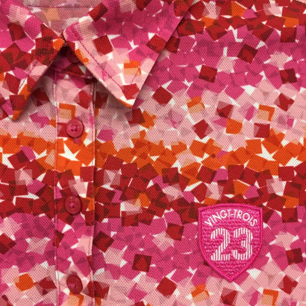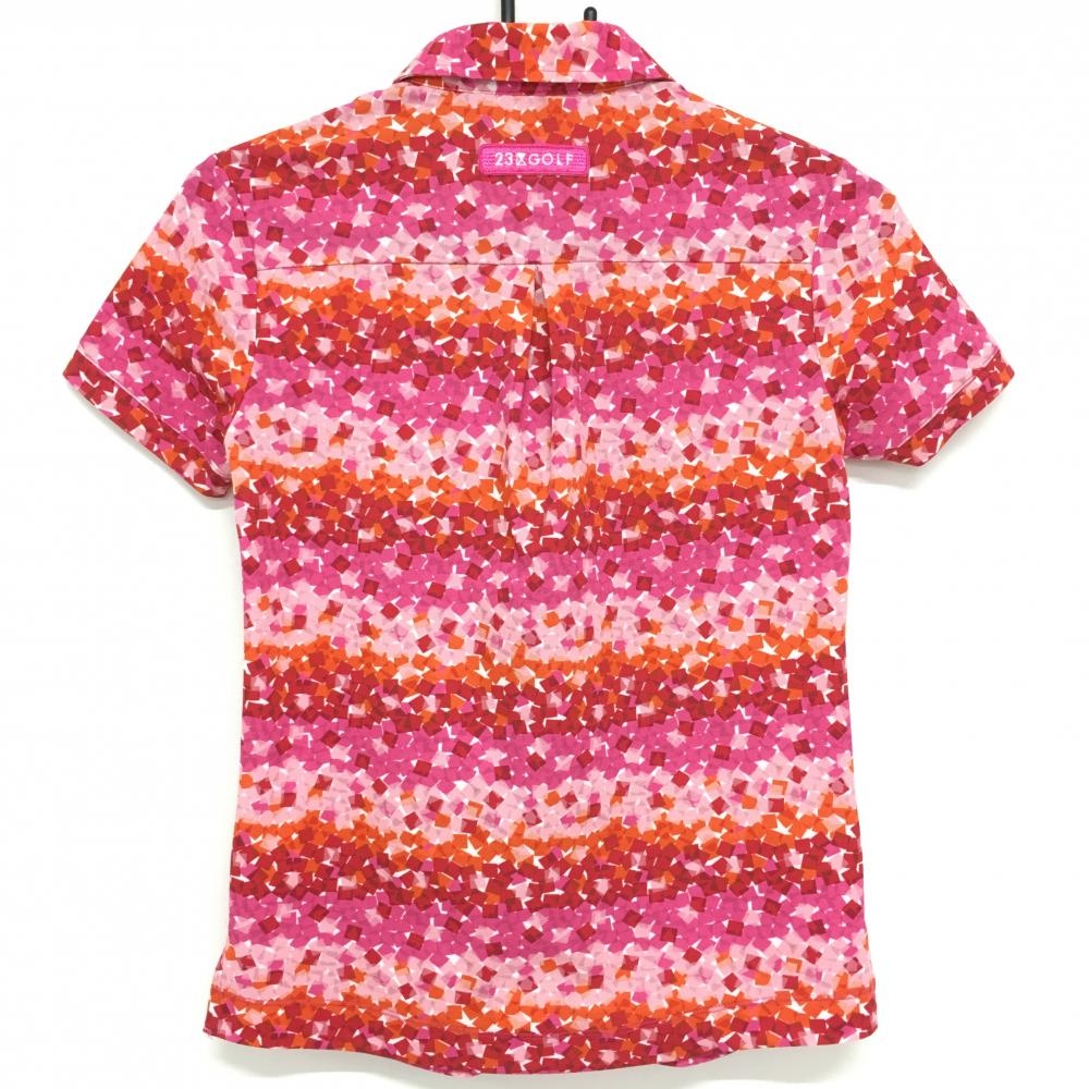 【超美品】23区ゴルフ 半袖ポロシャツ ピンク×レッド 総柄 レディース 0(S) ゴルフウェア 23区