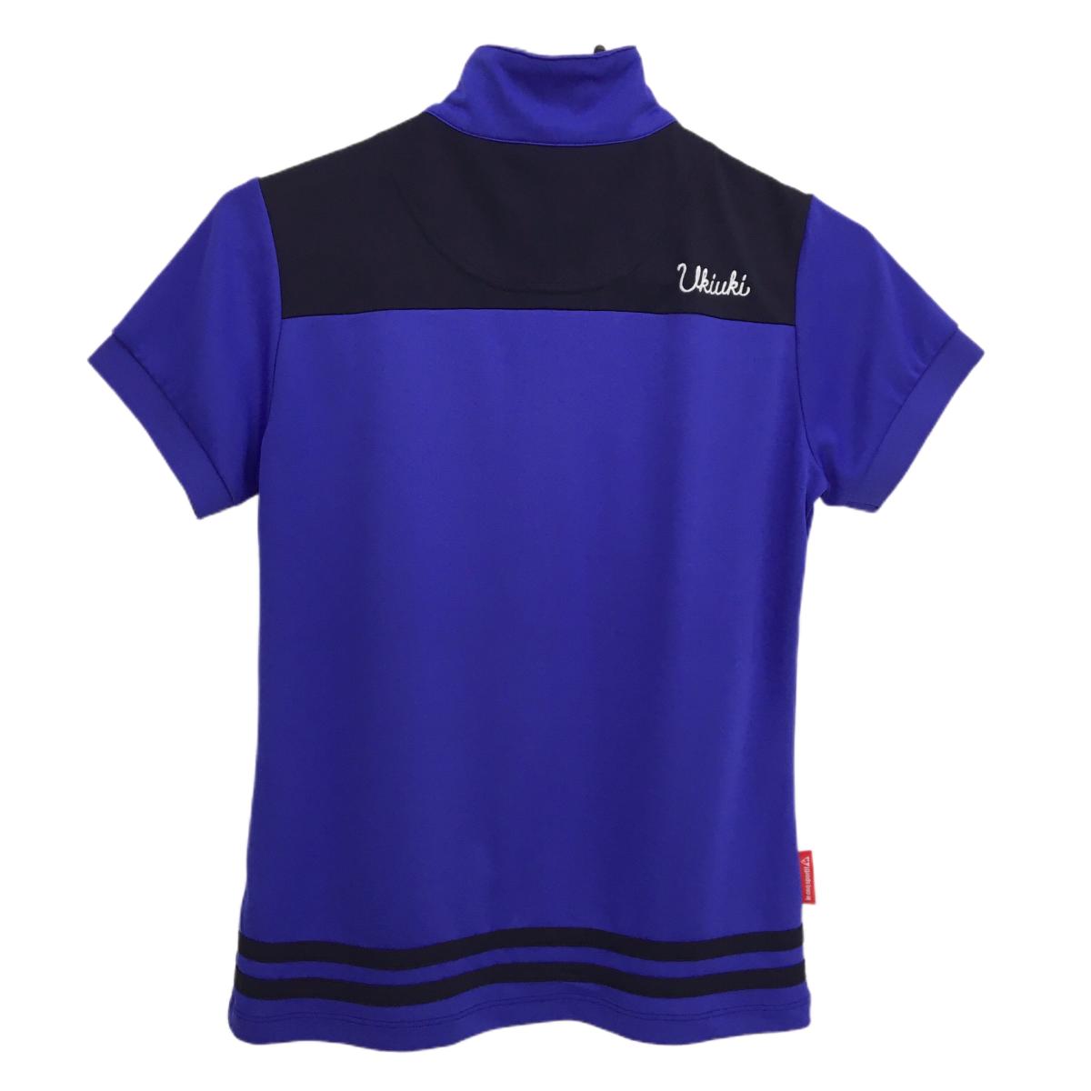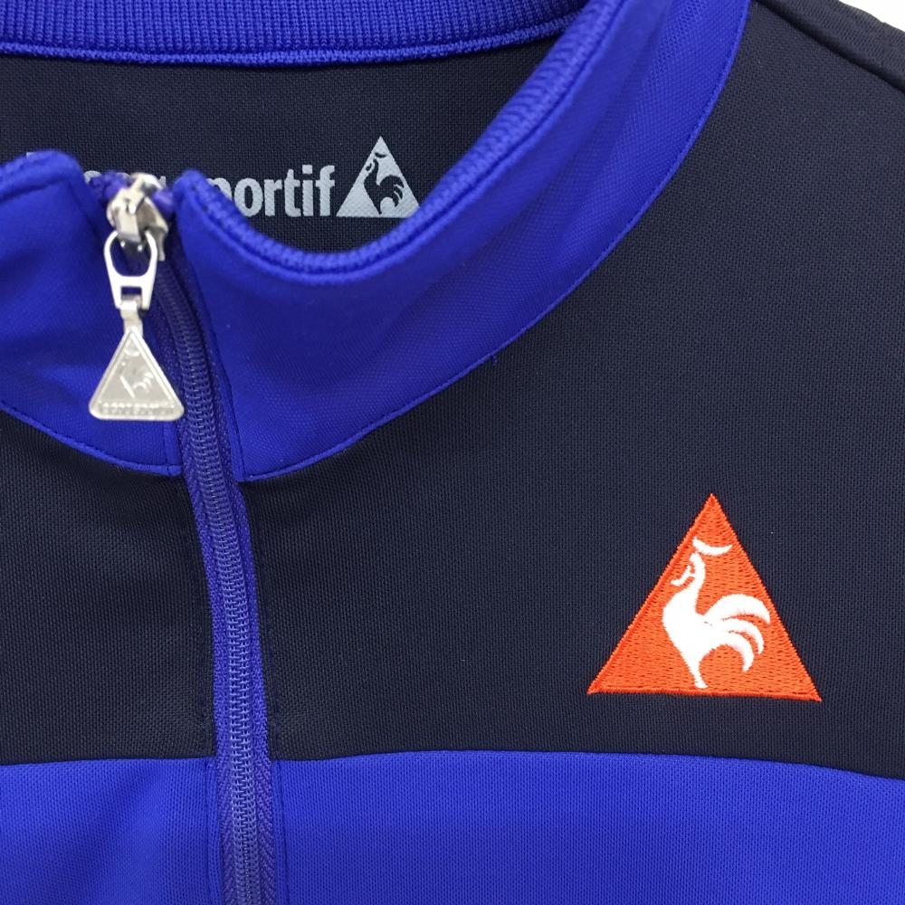 ルコック 半袖ハイネックシャツ ブルー×ダークネイビー ハーフジップ 裾ライン レディース M ゴルフウェア le coq sportif