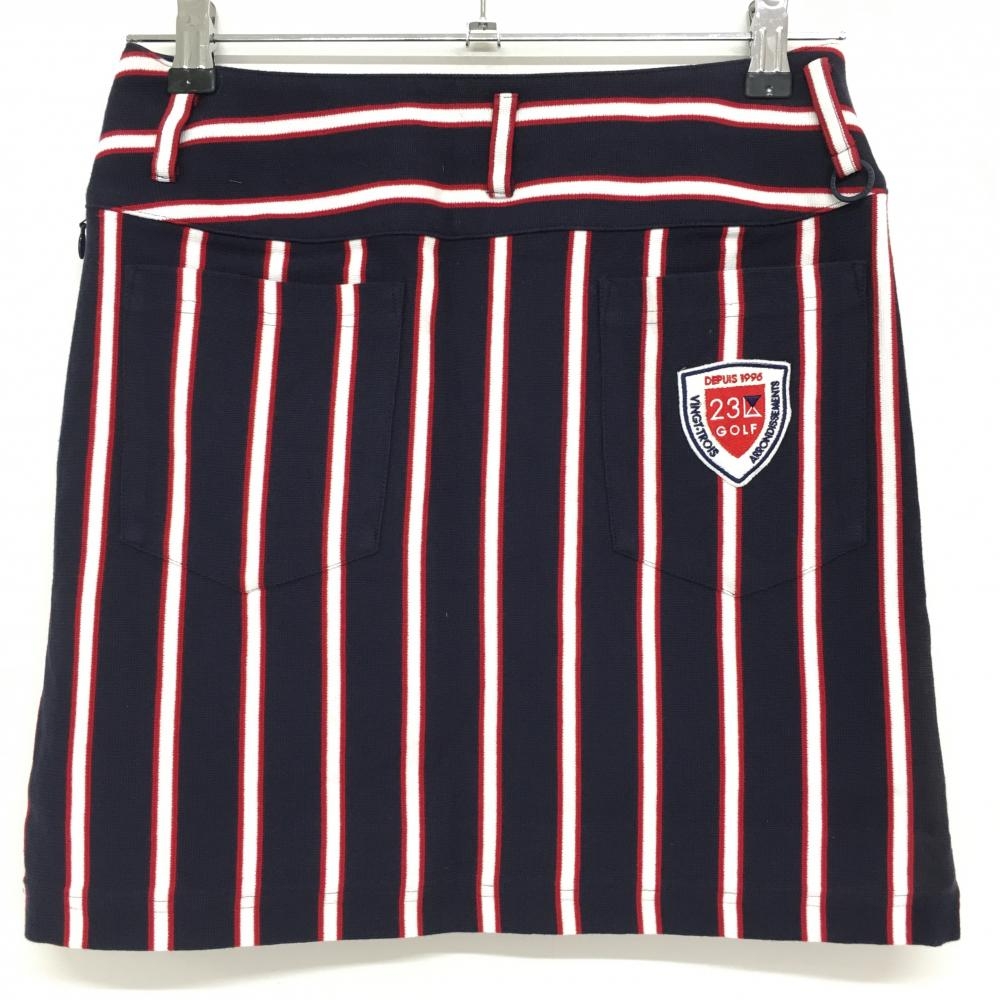 23区ゴルフ ニットスカート ネイビー×白 ストライプ レディース 61(S) ゴルフウェア 23区