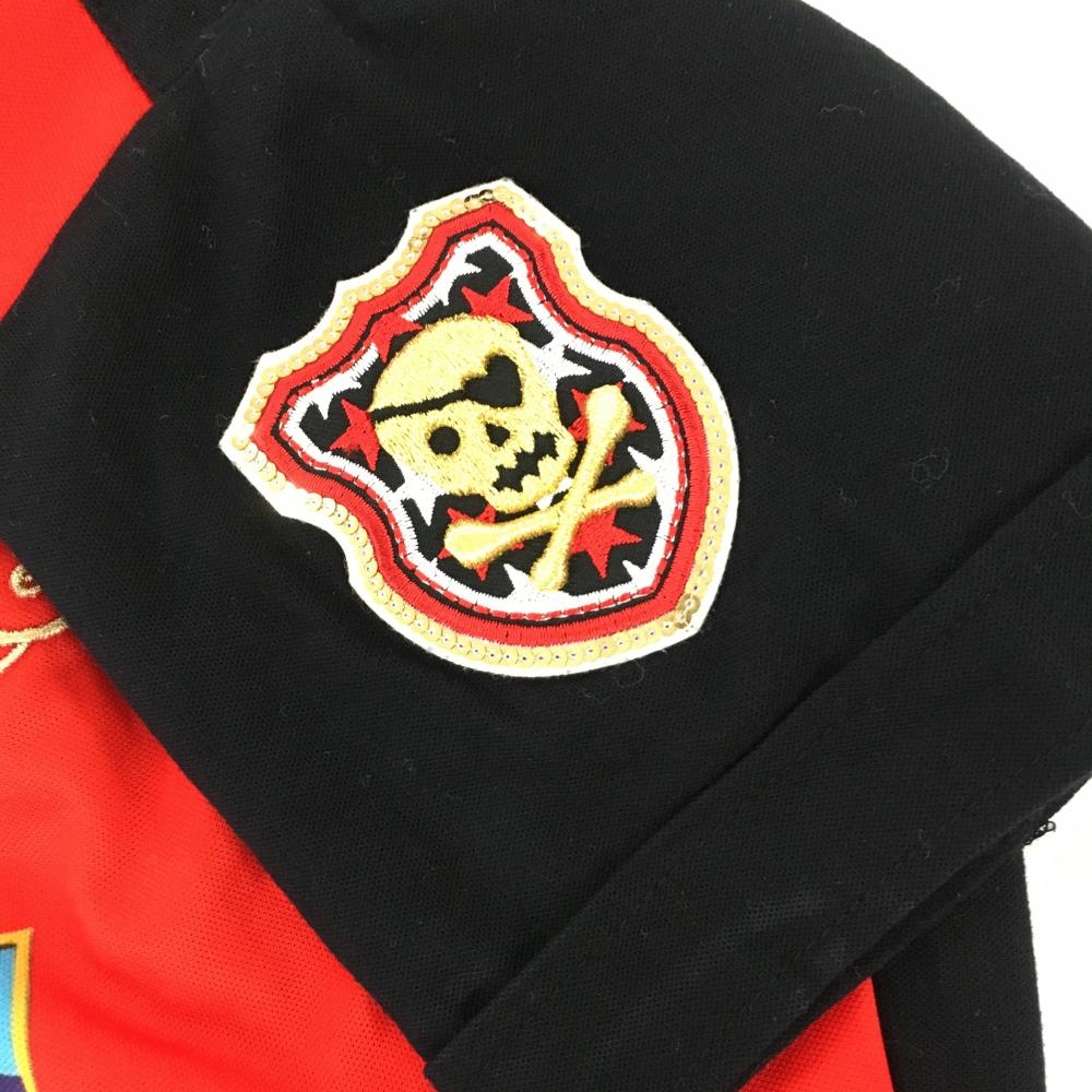 ダンスウィズドラゴン 半袖ポロシャツ レッド×黒 ハーフジップ 星 スカル刺しゅう レディース 2(M) ゴルフウェア Dance With Dragon