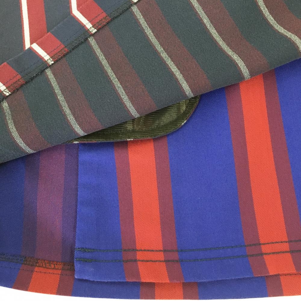 【美品】ルコック 巻きスカート ネイビー×ボルドー×ブルー ストライプ レディース 7(S) ゴルフウェア le coq sportif
