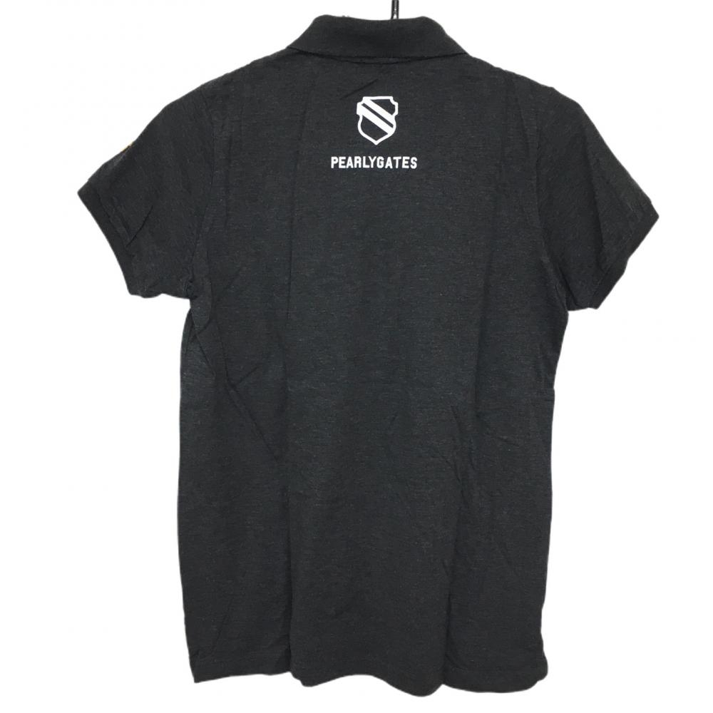 パーリーゲイツ 半袖ポロシャツ ダークグレー×白 リンゴプリント コットン100% レディース 1(M) ゴルフウェア PEARLY GATES