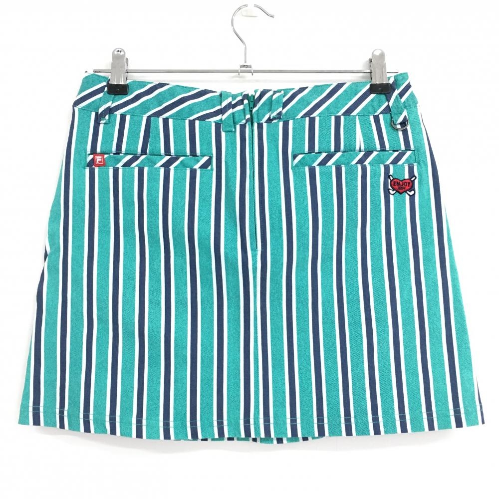 【美品】フィラゴルフ スカート グリーン×ネイビー ストライプ レディース L ゴルフウェア FILA GOLF