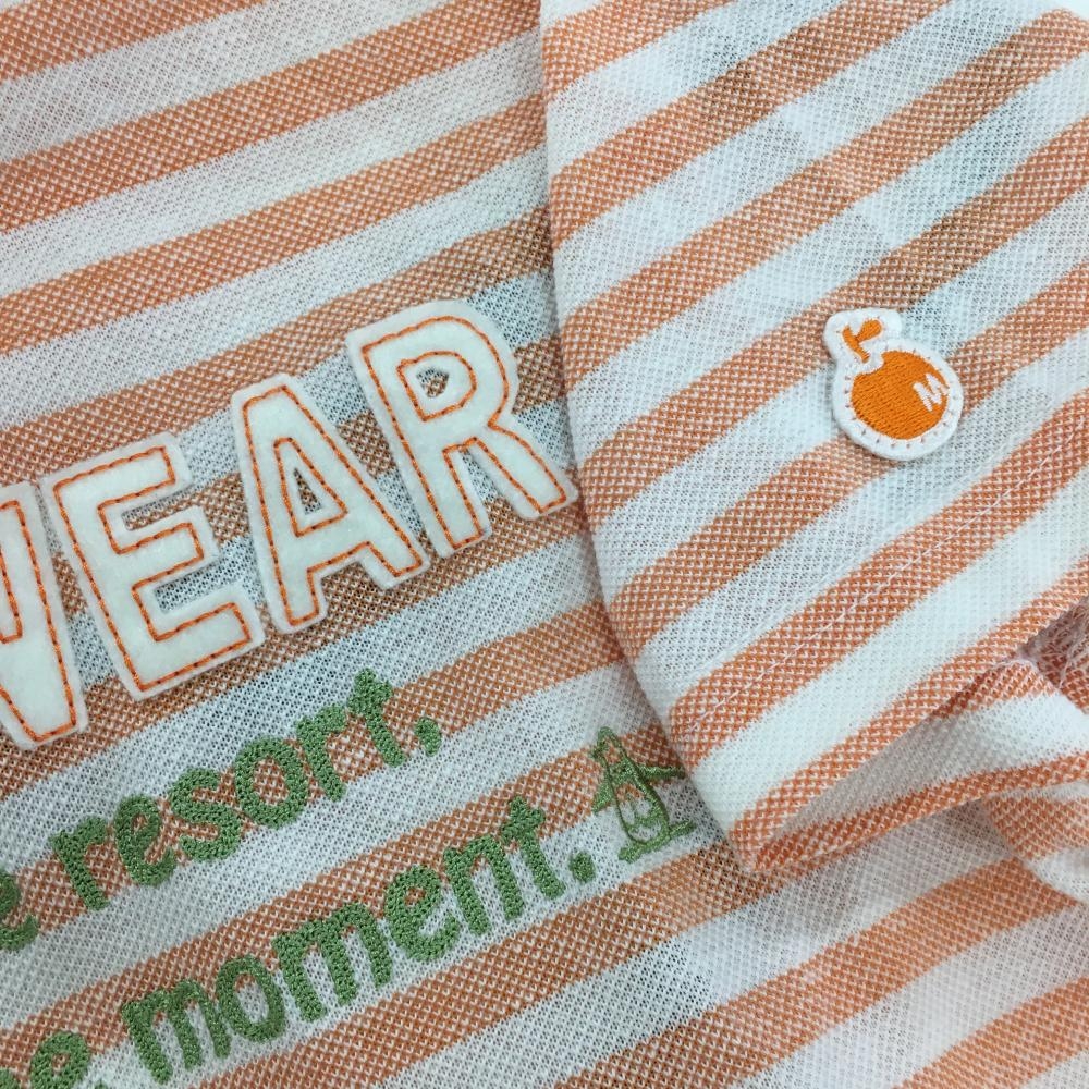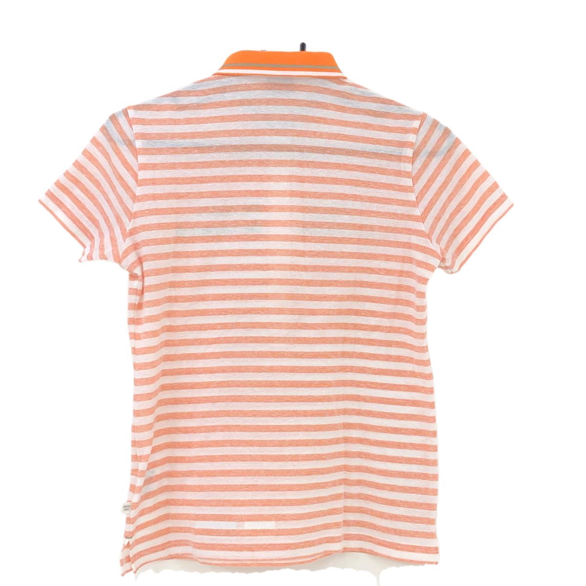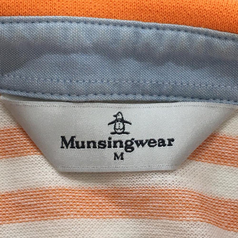 マンシングウェア 半袖ポロシャツ オレンジ×白 ボーダー柄 ロゴワッペン レディース M ゴルフウェア Munsingwear