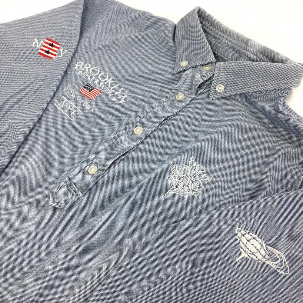 ビームスゴルフ 長袖ポロシャツ ネイビー系×白 ボタンダウン 星条旗刺しゅう レディース ゴルフウェア BEAMS GOLF
