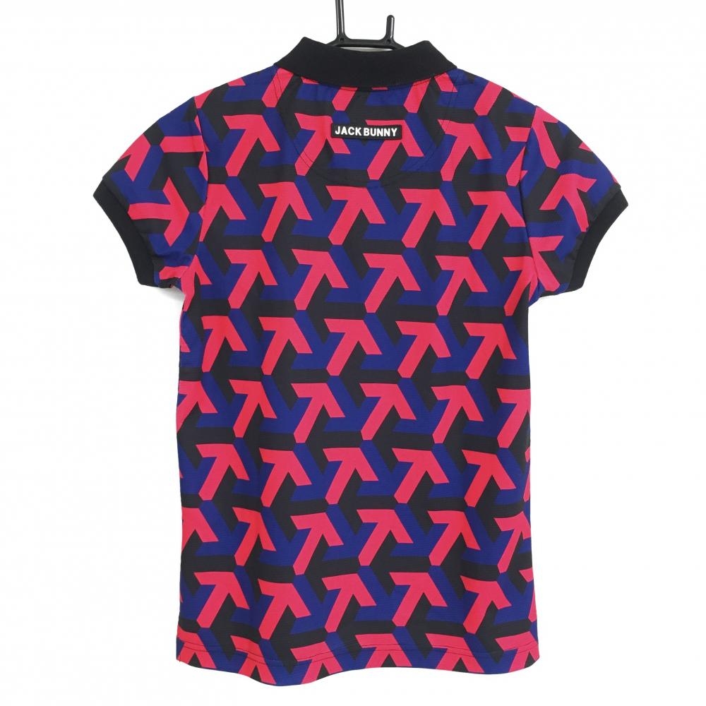 ジャックバニー 半袖ポロシャツ ネイビー×レッド 総柄 レディース 0(S) ゴルフウェア 2023年モデル Jack Bunny