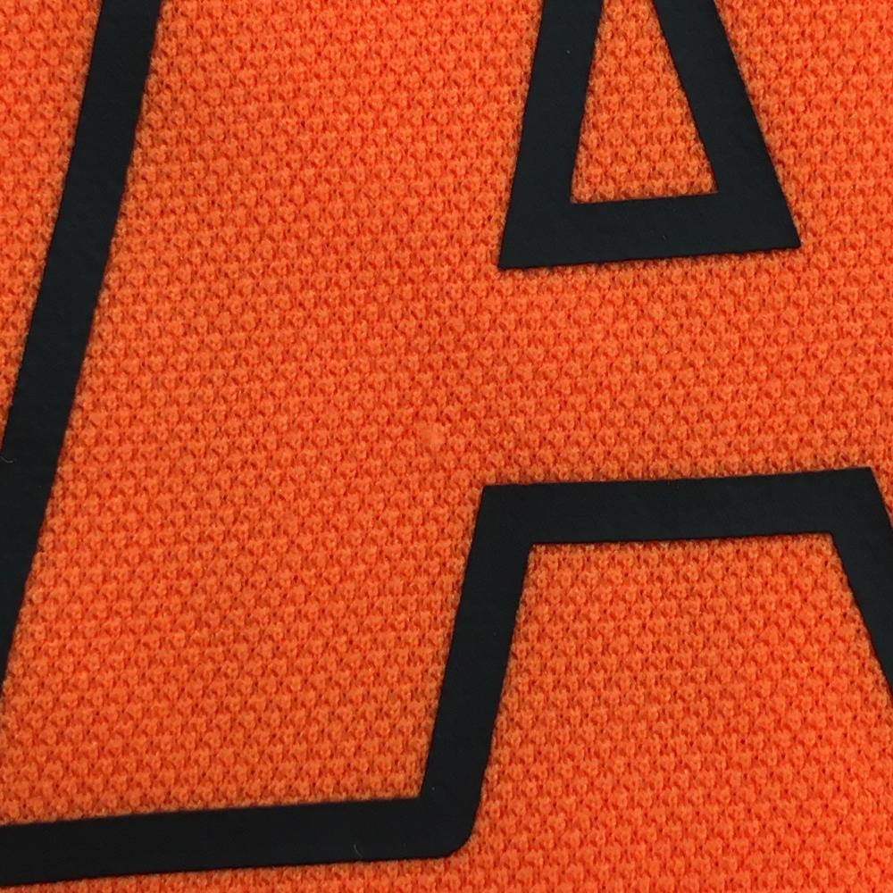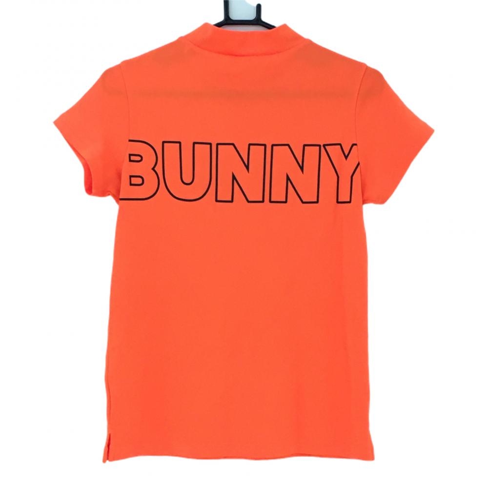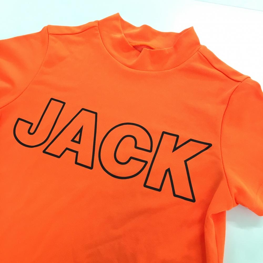 【美品】ジャックバニー 半袖ハイネックシャツ 蛍光オレンジ×黒 ビッグロゴ レディース 0(S) ゴルフウェア 2022年モデル Jack Bunny