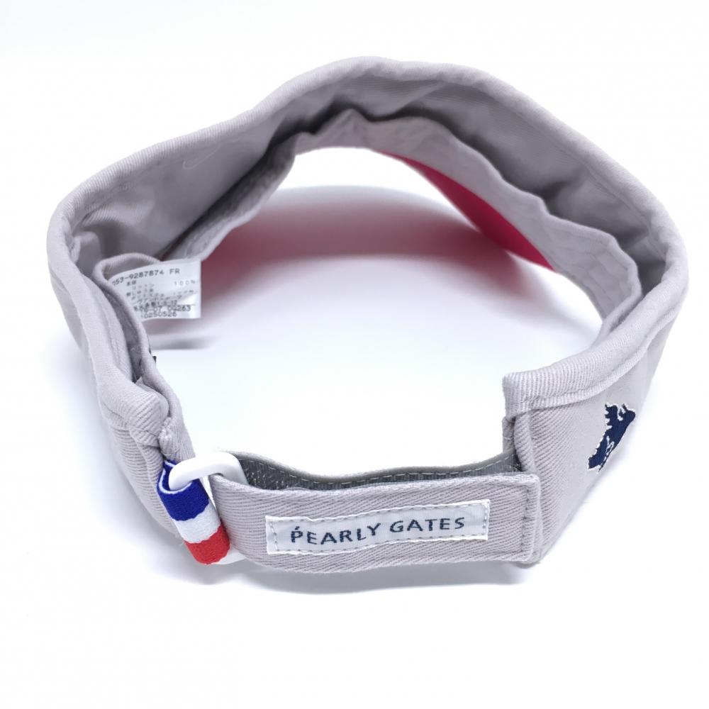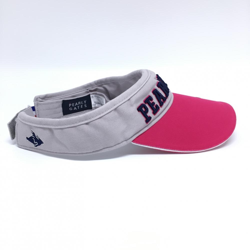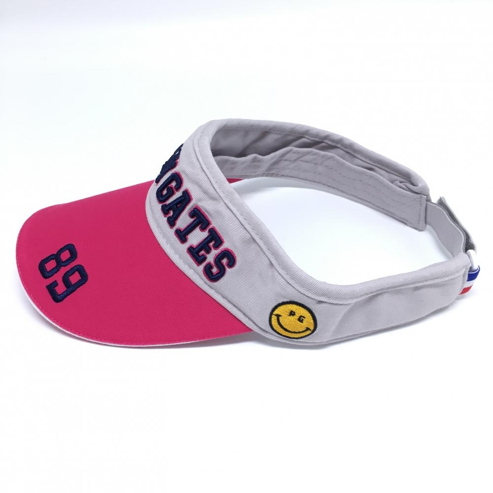 【美品】パーリーゲイツ サンバイザー ピンク×ライトグレー ニコちゃん スマイル コットン100% FR ゴルフウェア PEARLY GATES