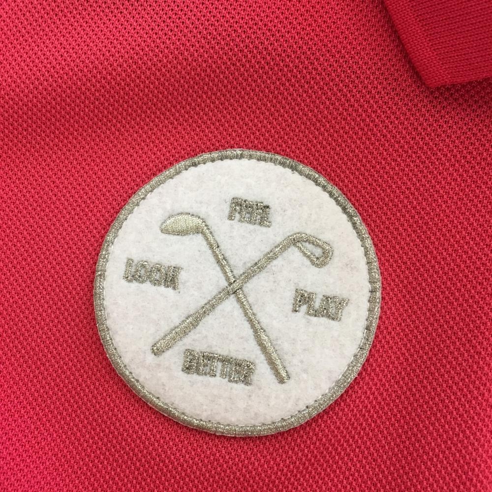 【美品】プーマ 半袖ポロシャツ レッドピンク ロゴ刺しゅう ワッペン レディース M ゴルフウェア PUMA