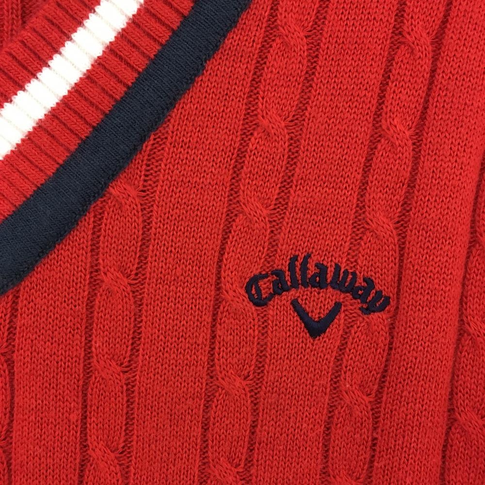 【美品】キャロウェイ ニットベスト レッド×ネイビー ケーブル編み Vネック ウール混 レディース M ゴルフウェア Callaway