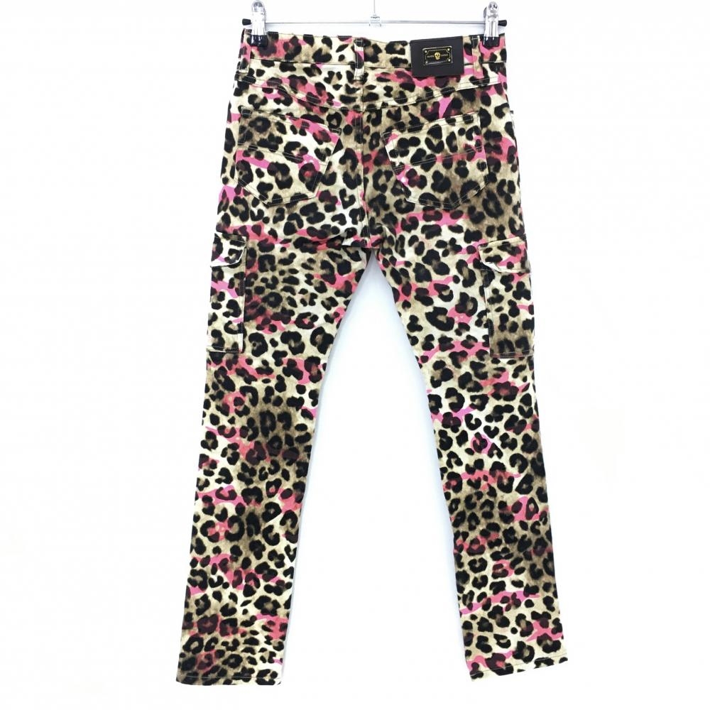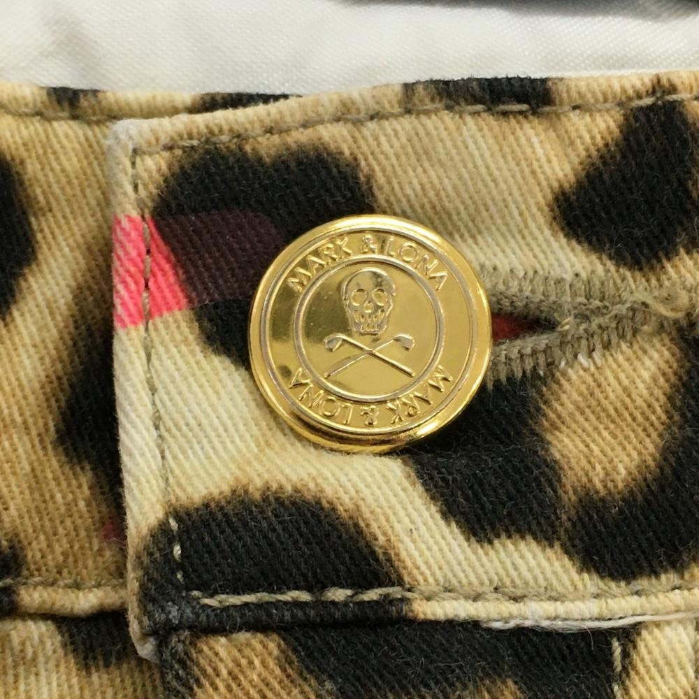 【超美品】マークアンドロナ パンツ ブラウン×ベージュ レオパード スカル レディース S ゴルフウェア MARK&LONA