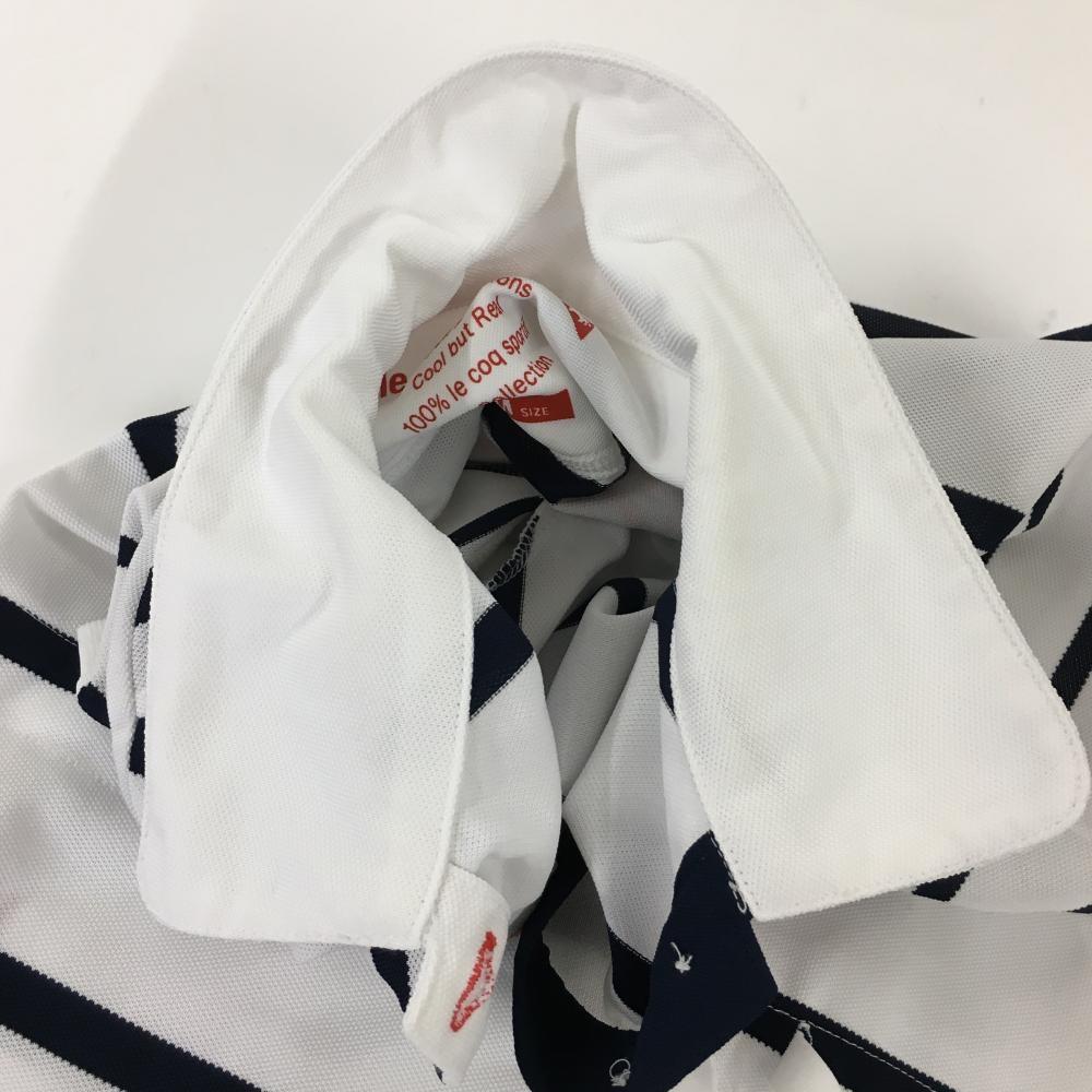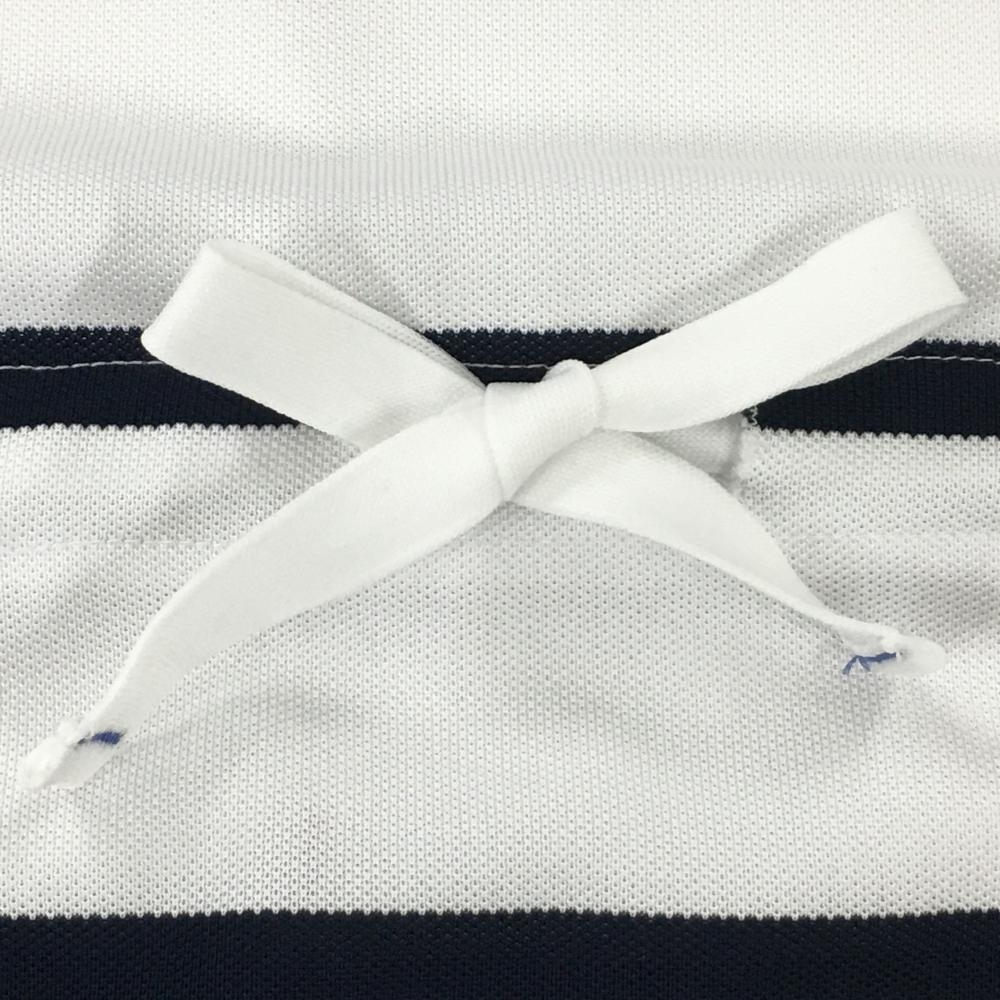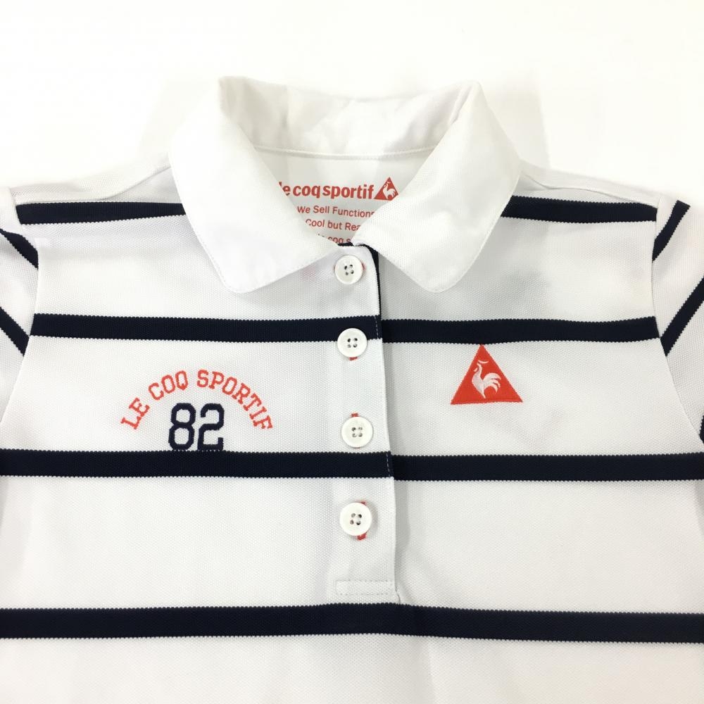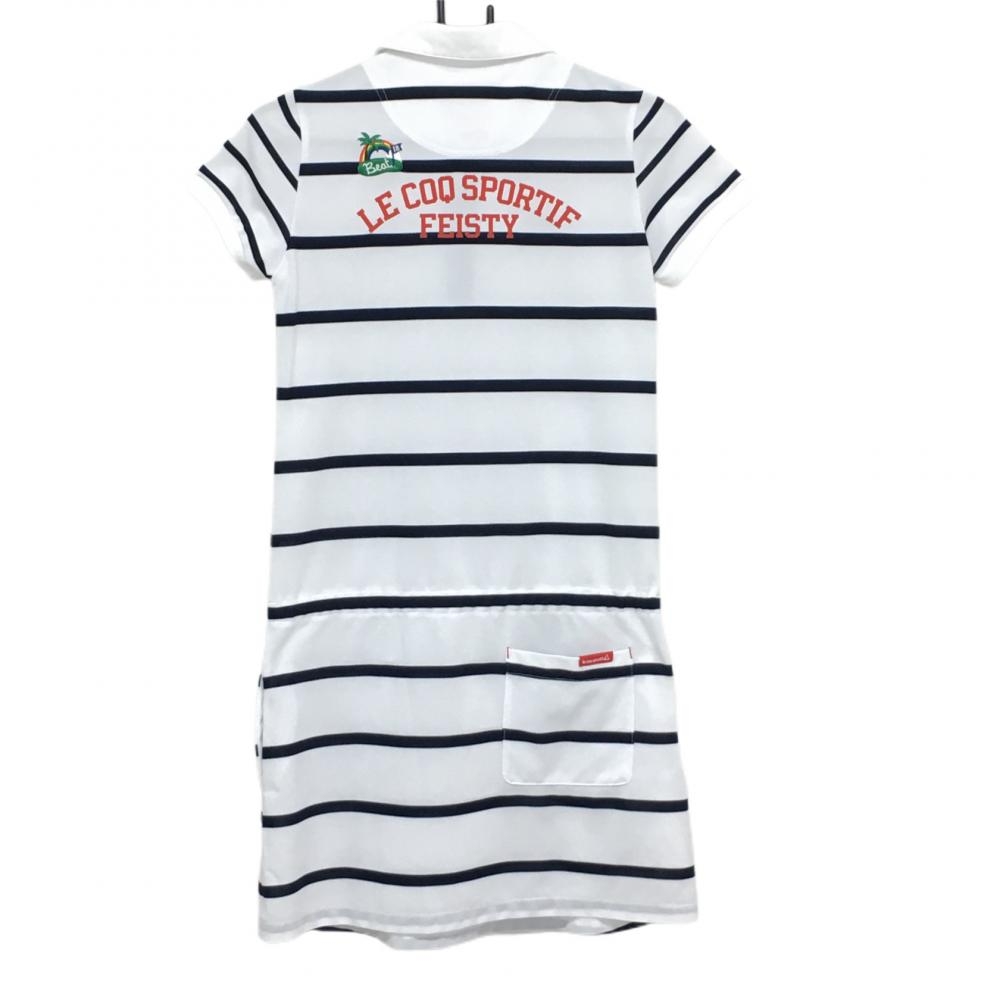 ルコック 半袖ポロワンピース 白×ネイビー ボーダー柄 ロゴ刺しゅう ウエスト調節紐 レディース M ゴルフウェア le coq sportif