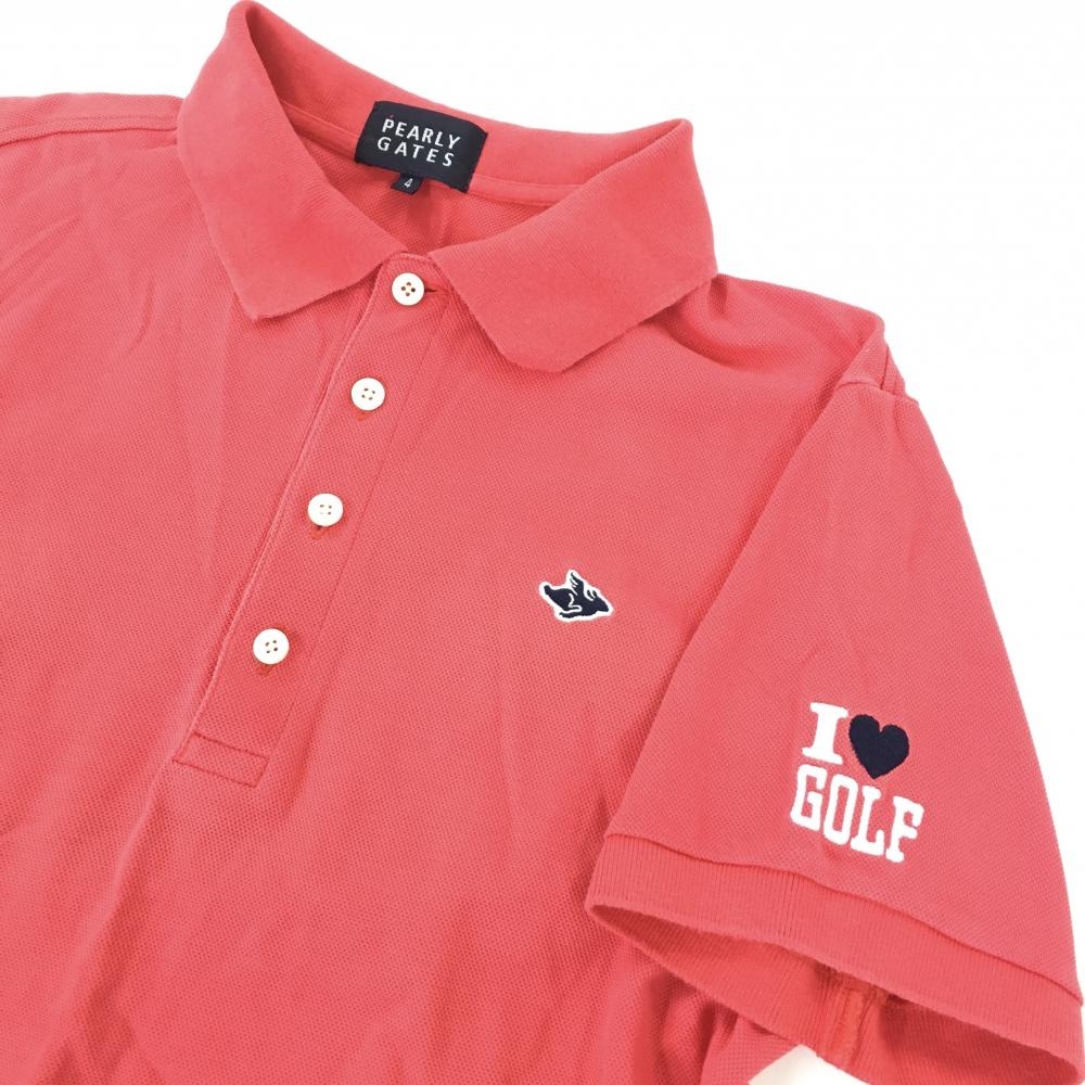 パーリーゲイツ 半袖ポロシャツ レッド フライングラビットワッペン メンズ 4(M) ゴルフウェア PEARLY GATES