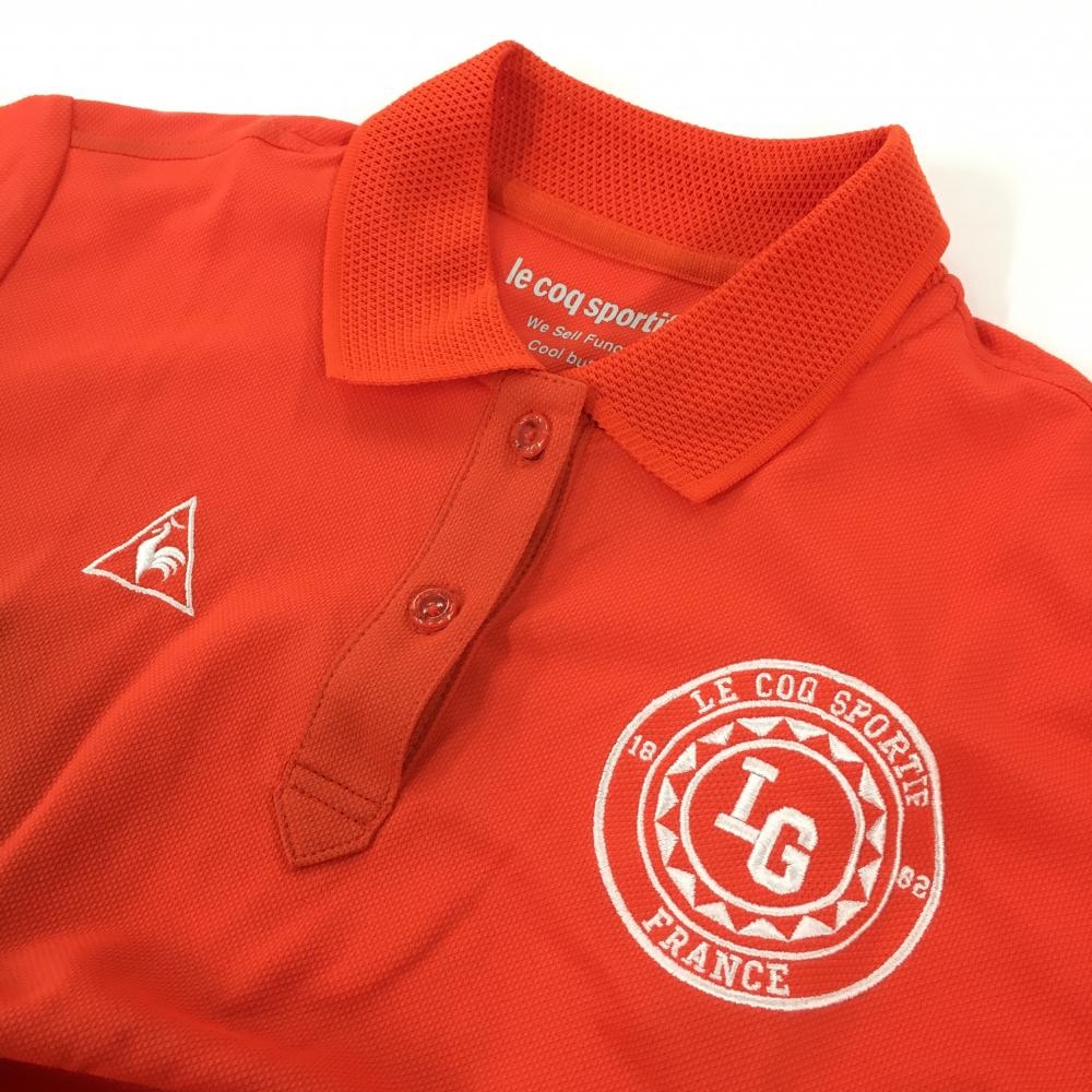 【美品】ルコック 半袖ポロシャツ オレンジ ロゴ刺しゅう 襟・袖口メッシュ調 レディース M ゴルフウェア le coq sportif