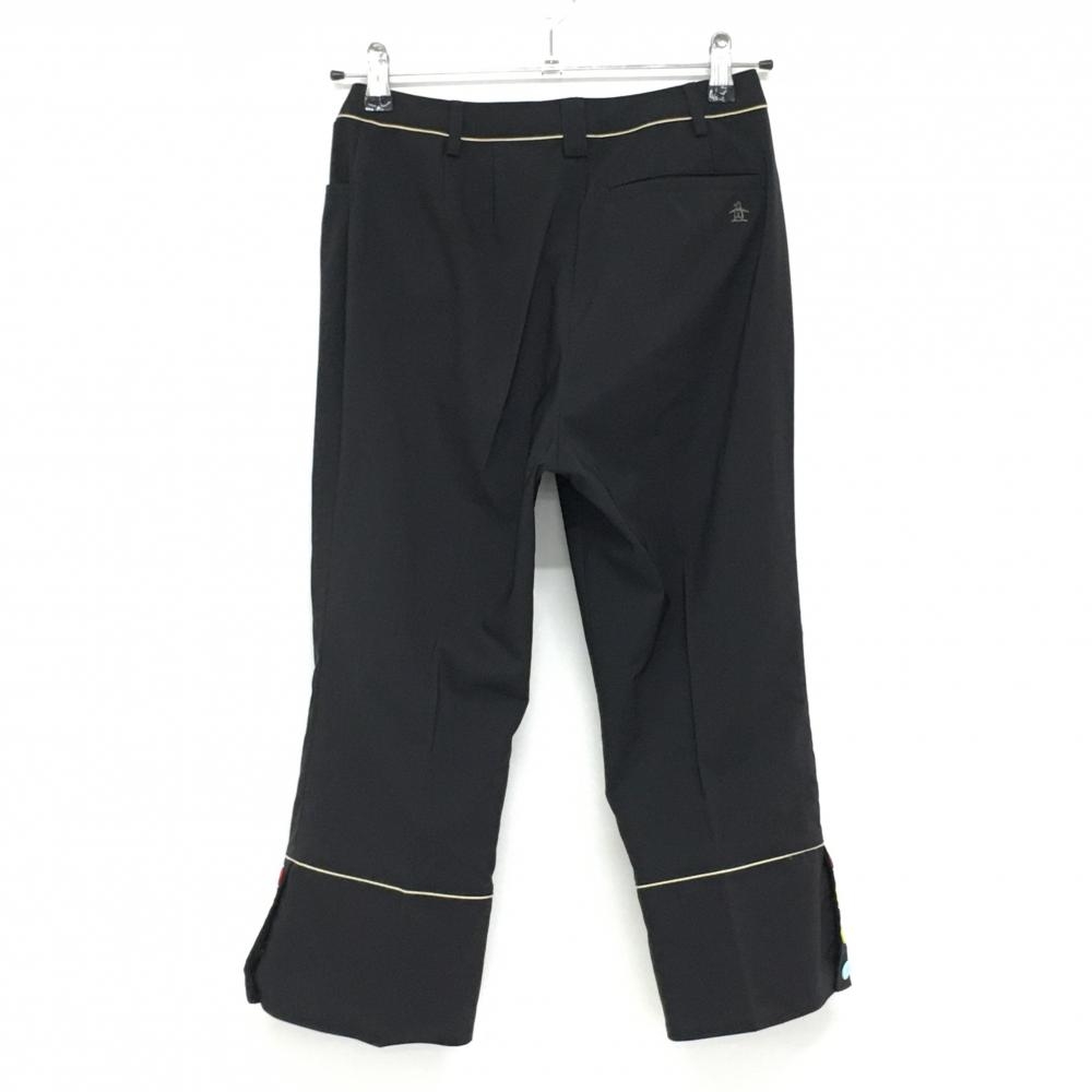 【美品】マンシングウェア 七分丈パンツ 黒×ベージュ 裾ボタン バックロゴ刺しゅう レディース 7(S) ゴルフウェア Munsingwear