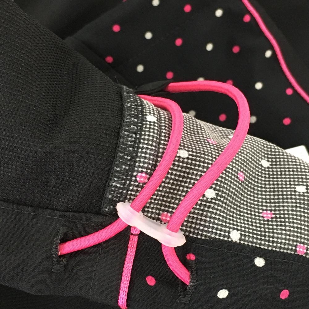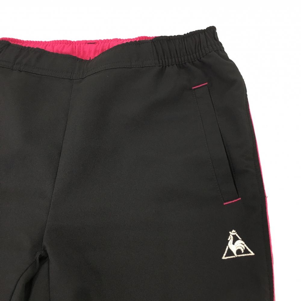 【超美品】ルコック 半端丈パンツ 黒×ピンク 一部ドット柄 ロゴ刺しゅう 裾ドローコード レディース S ゴルフウェア le coq sportif