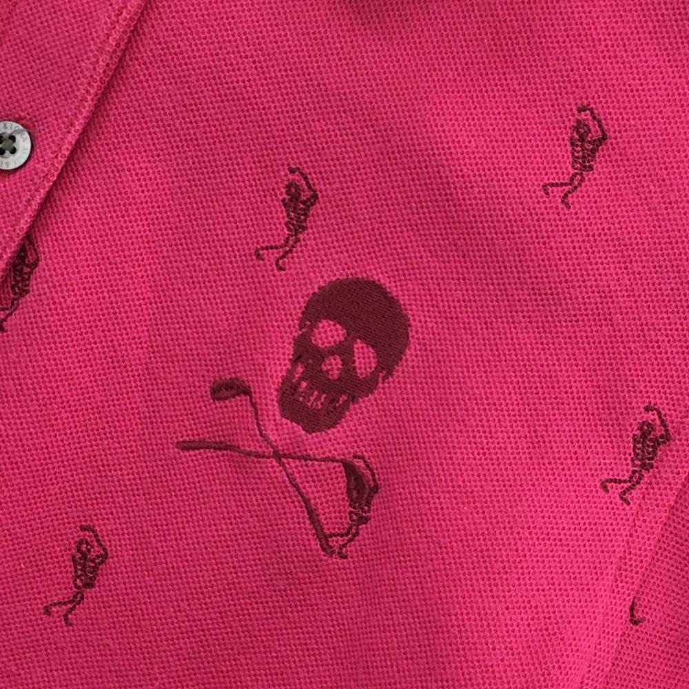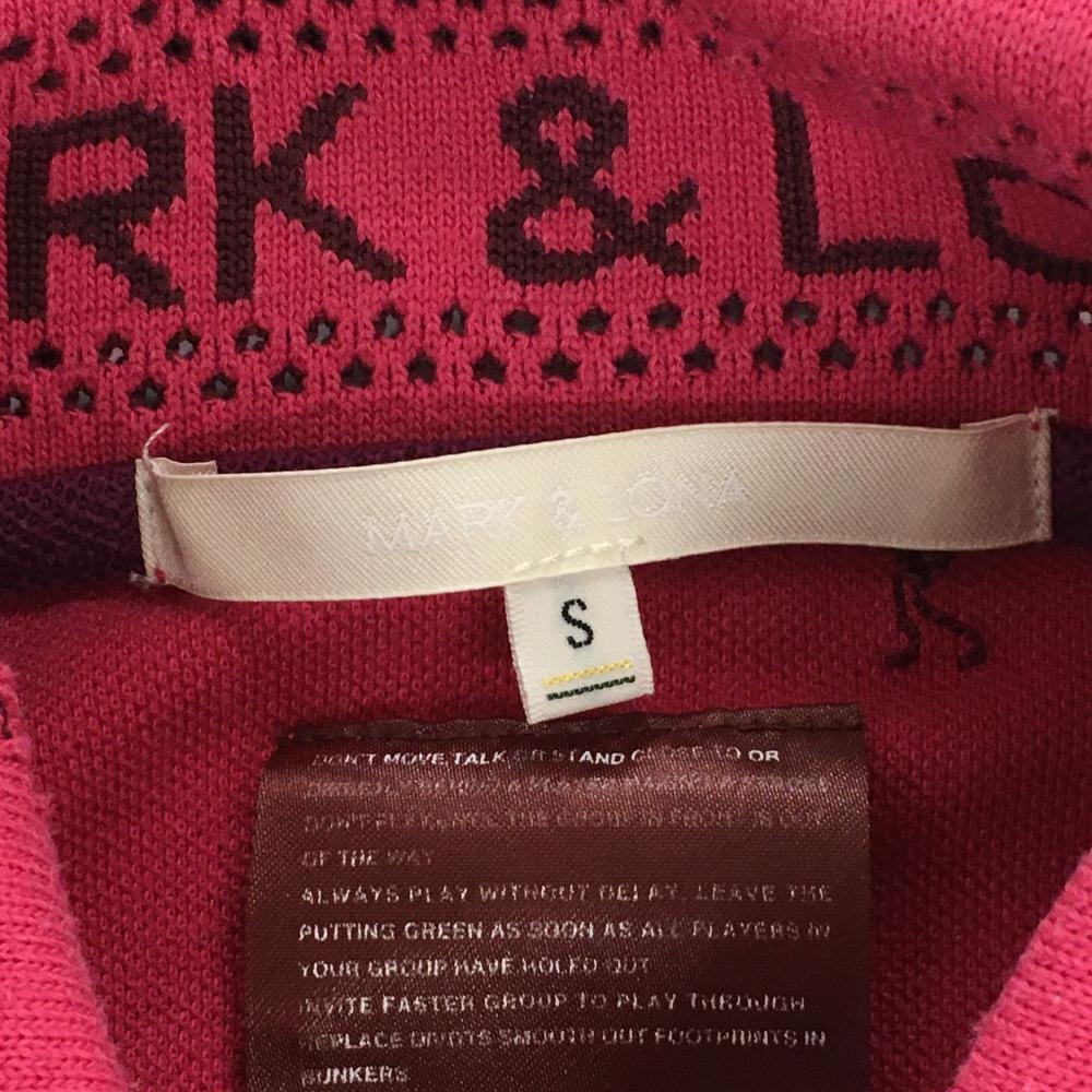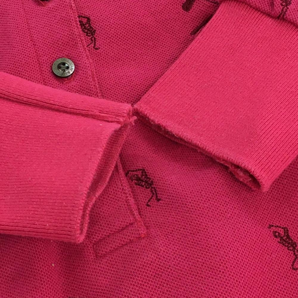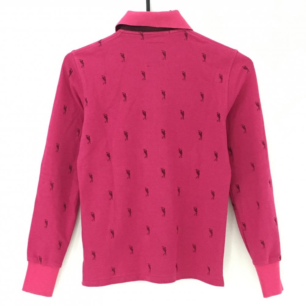 マークアンドロナ 長袖ポロシャツ ピンク 刺しゅう総柄 スカル レディース S ゴルフウェア MARK&LONA