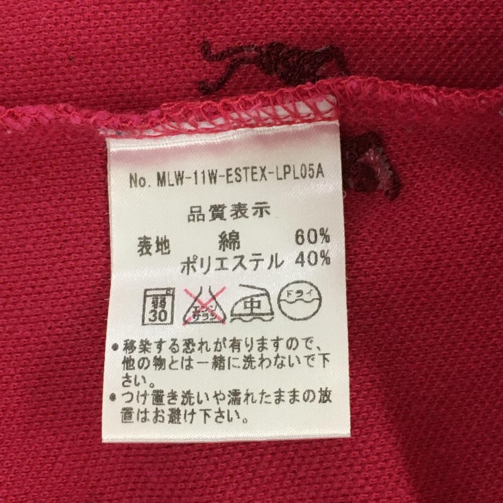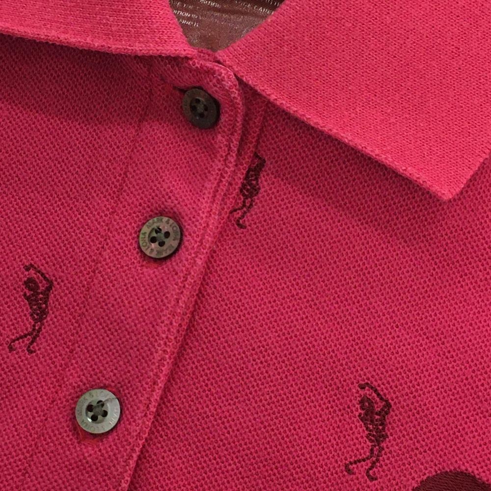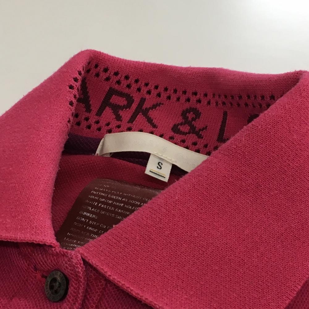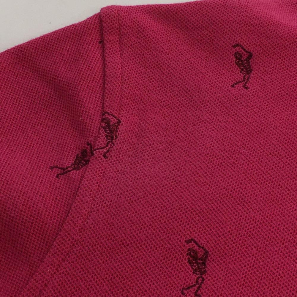 マークアンドロナ 長袖ポロシャツ ピンク 刺しゅう総柄 スカル レディース S ゴルフウェア MARK&LONA
