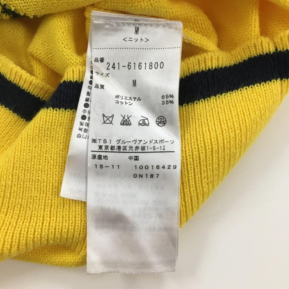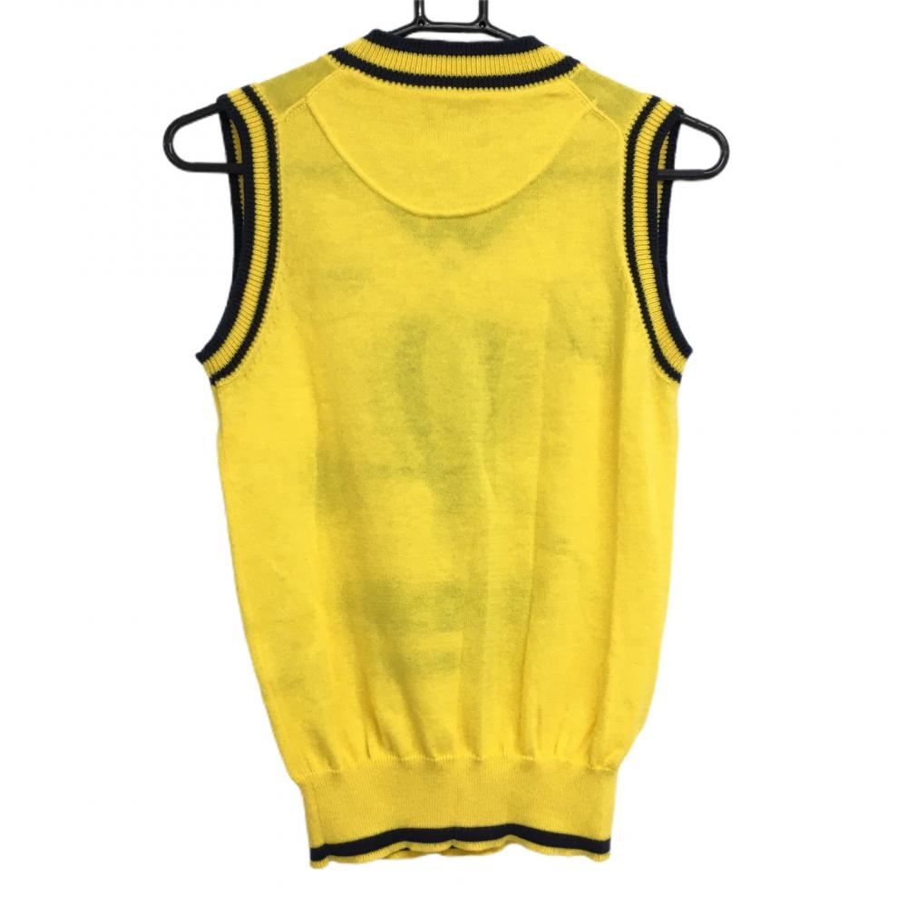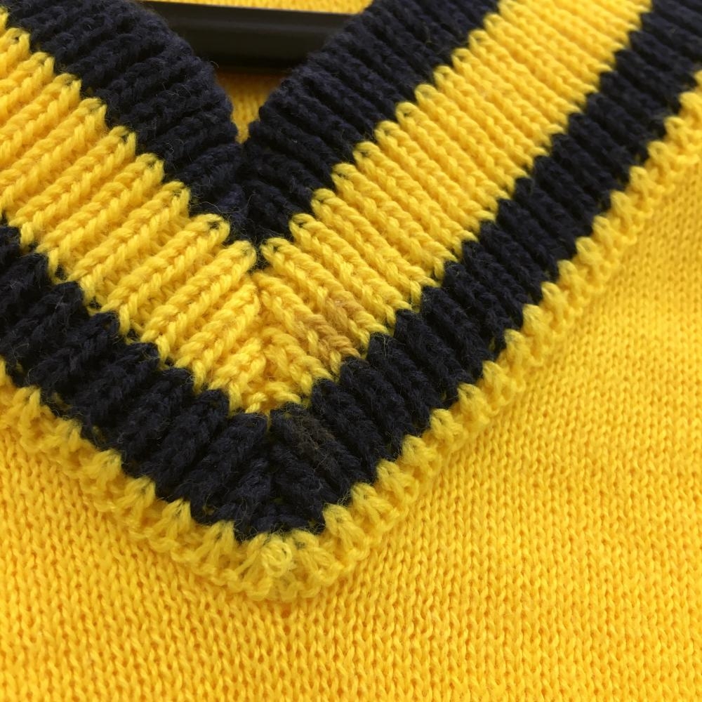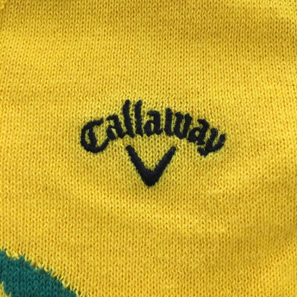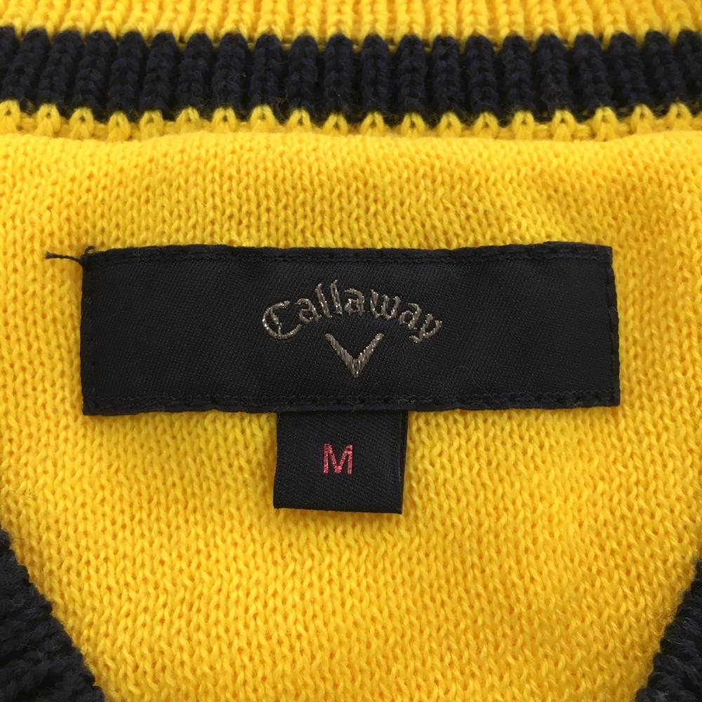 【美品】キャロウェイ ニットベスト イエロー×ネイビー コットン混 Vネック レディース M ゴルフウェア Callaway