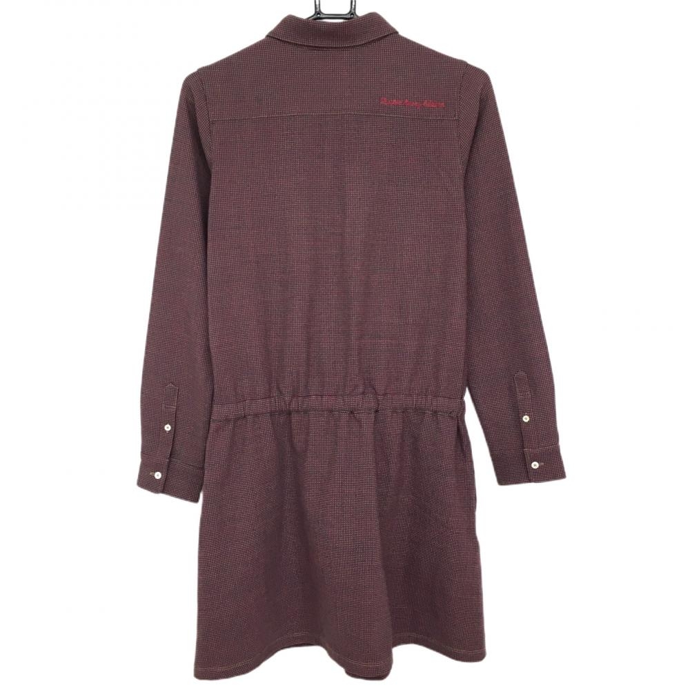 【超美品】マスターバニー 長袖ポロワンピース ボルドー×ベージュ ドット風 レディース 1(M) ゴルフウェア MASTER BUNNY EDITION