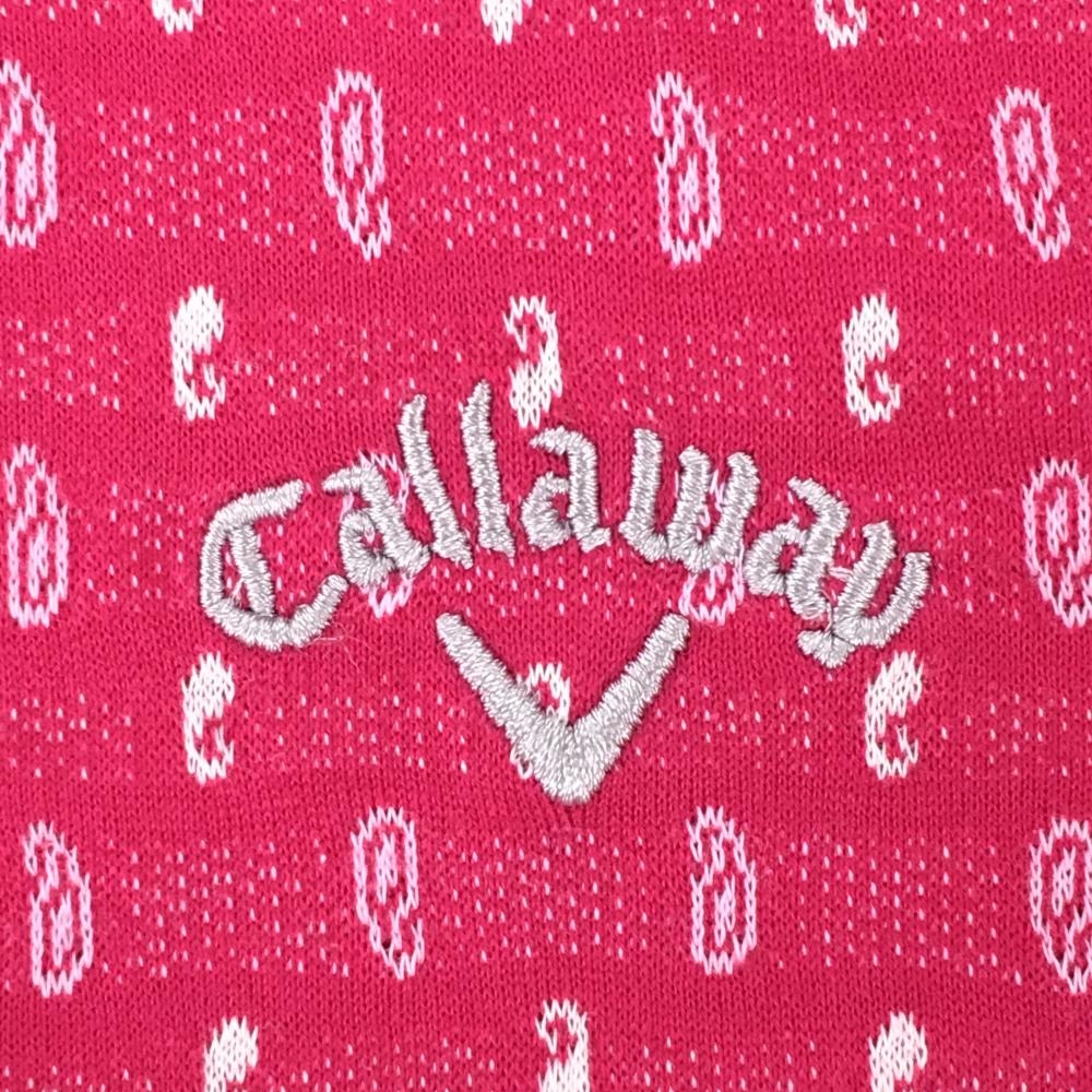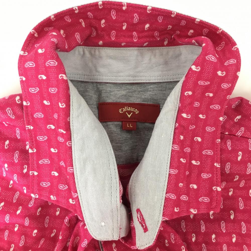 【美品】キャロウェイ レッドレーベル 半袖ポロシャツ ピンク×白 総柄 メンズ LL ゴルフウェア Callaway
