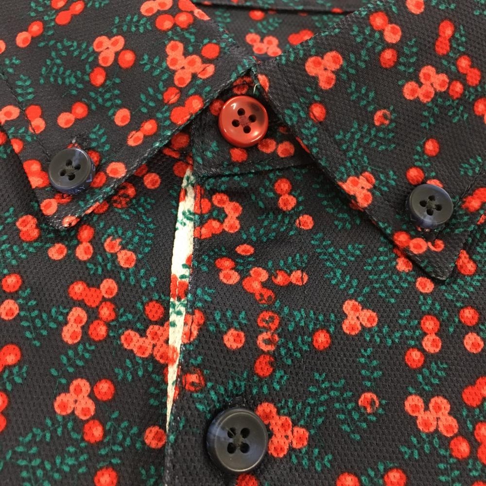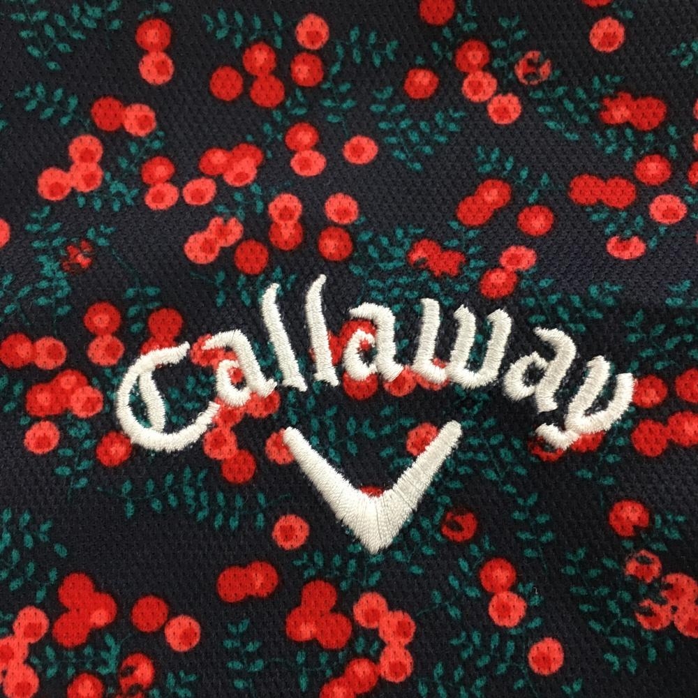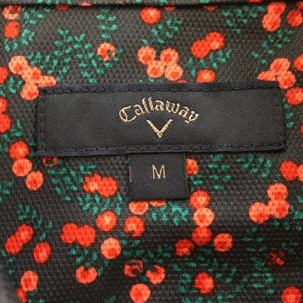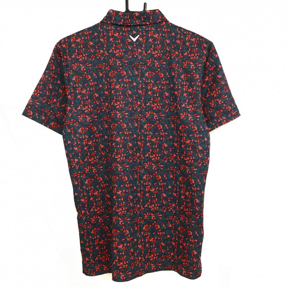 【超美品】キャロウェイ 半袖ポロシャツ ネイビー×レッド 総柄 実 ボタンダウン メンズ M ゴルフウェア Callaway