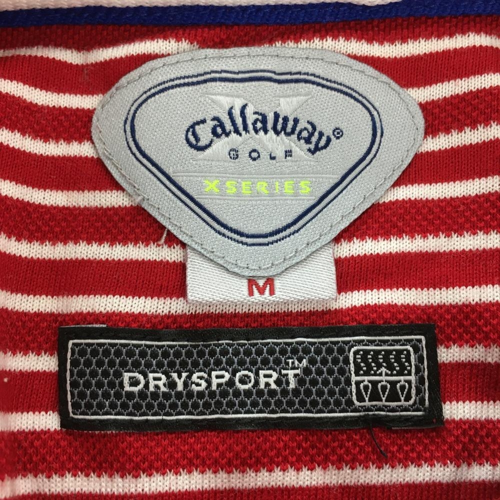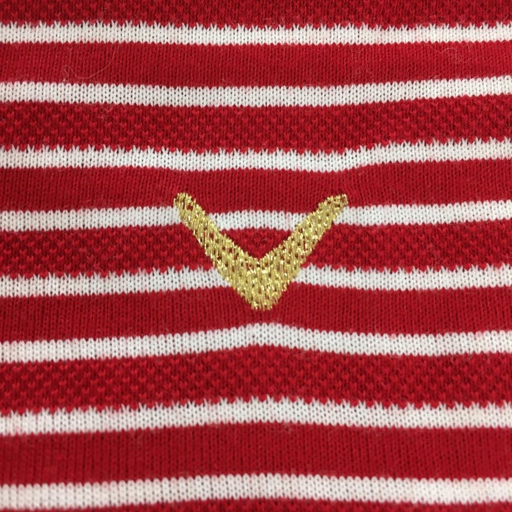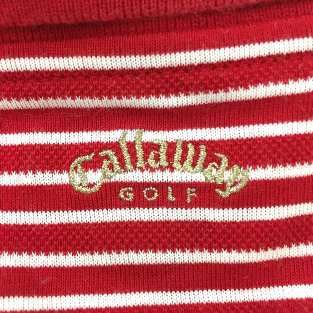 【美品】キャロウェイ 半袖ポロシャツ レッド×白 ボーダー レディース M ゴルフウェア Callaway