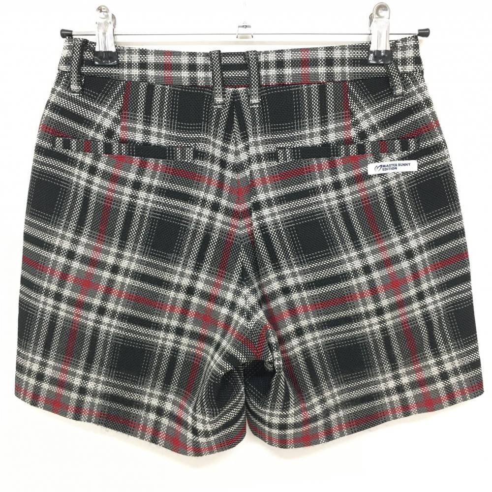 【美品】マスターバニー ショートパンツ グレー×黒×レッド チェック ニット レディース 00(XS) ゴルフウェア MASTER BUNNY EDITION