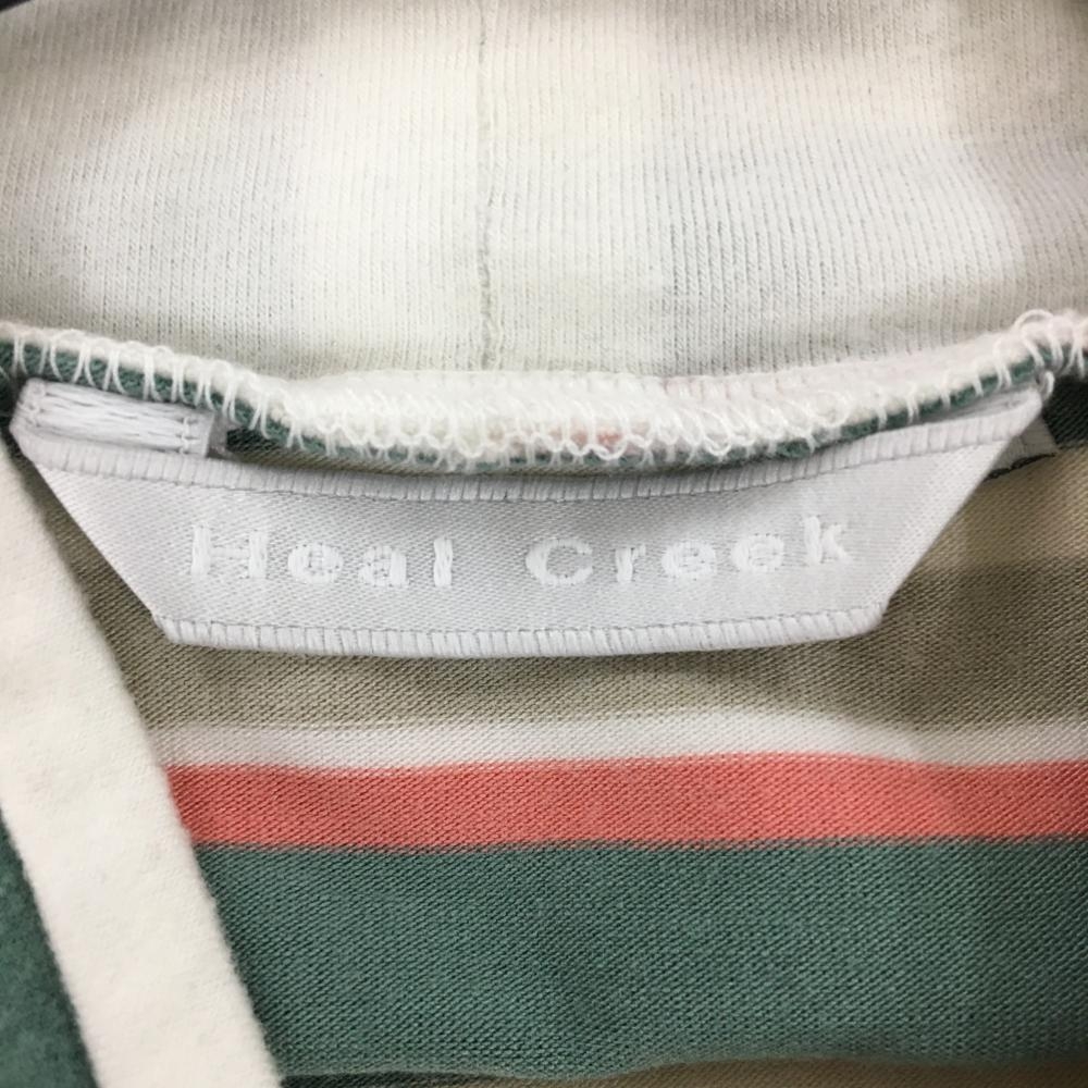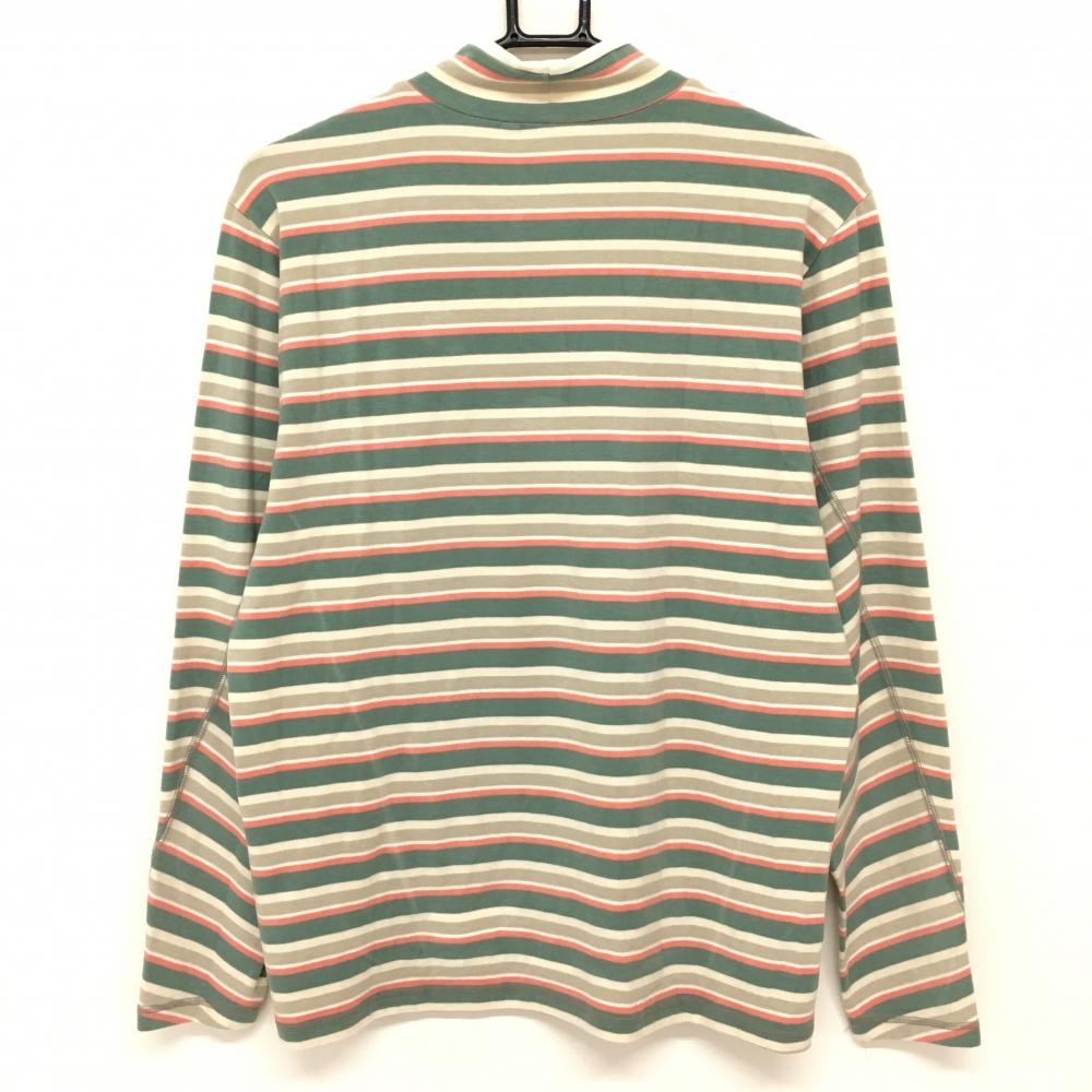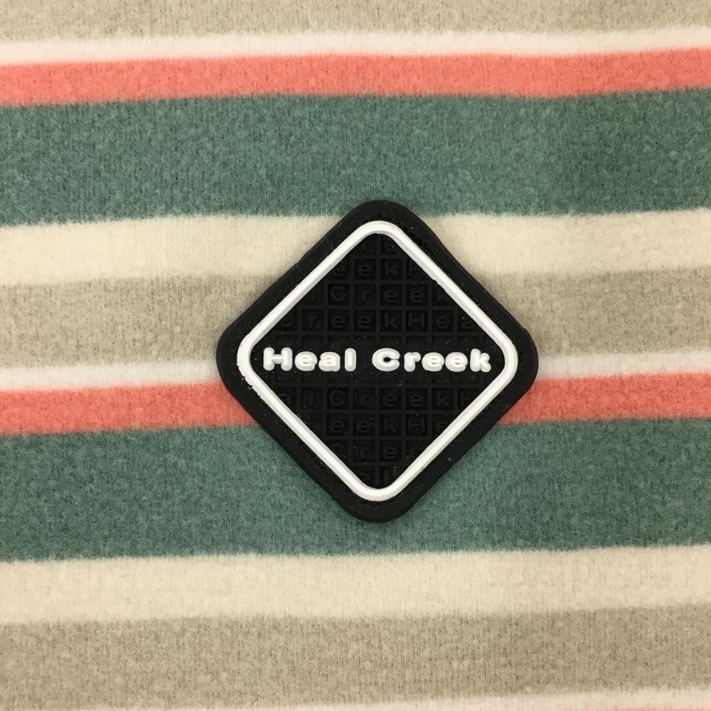 ヒールクリーク 長袖ハイネックシャツ グリーン×ベージュ ボーダー 胸元ロゴ メンズ ゴルフウェア Heal Creek