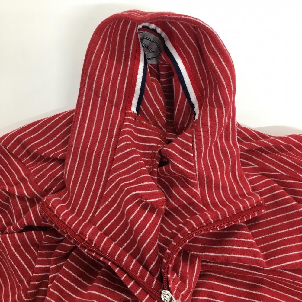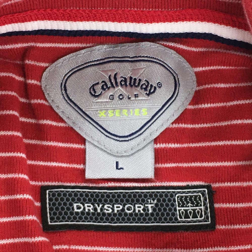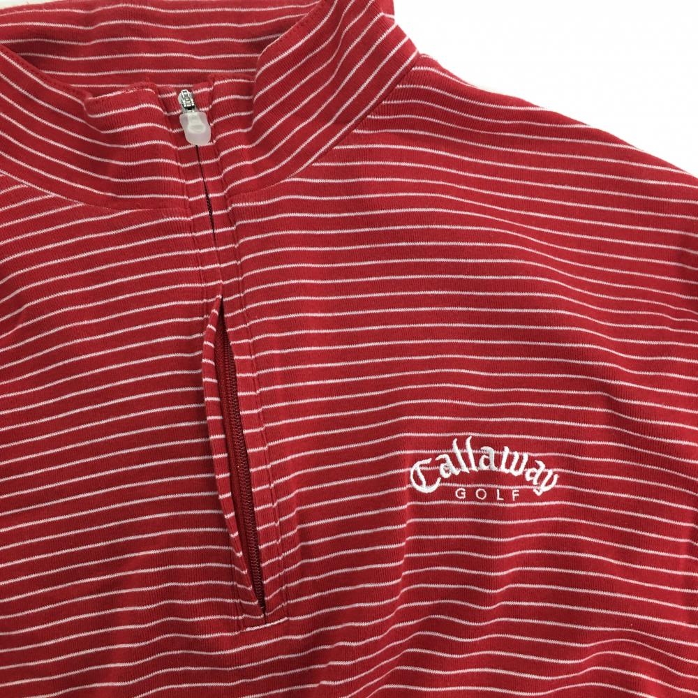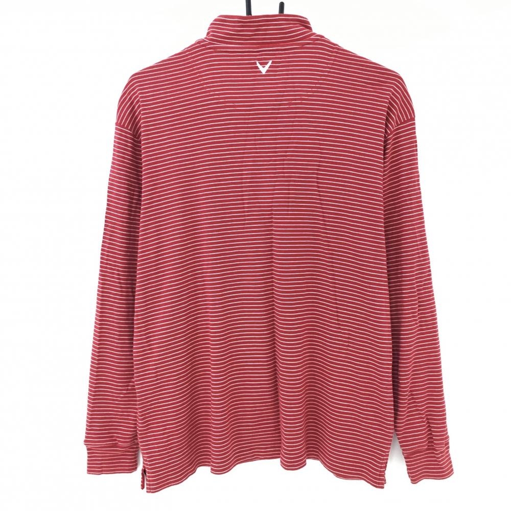キャロウェイ 長袖ハイネックシャツ レッド×白 ボーダー ハーフジップ ロゴ刺しゅう メンズ L ゴルフウェア Callaway