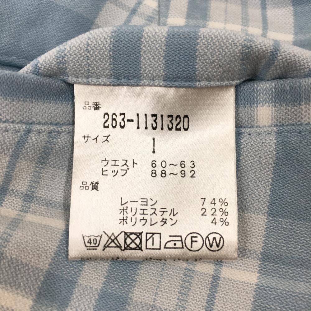 ジャックバニー パンツ ライトブルー×白 チェック柄 バックロゴ レディース 1(M) ゴルフウェア Jack Bunny