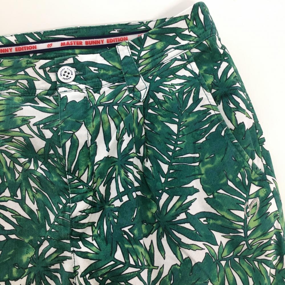 【美品】マスターバニー 七分丈パンツ 白×グリーン リーフ柄 レディース 0(S) ゴルフウェア MASTER BUNNY EDITION