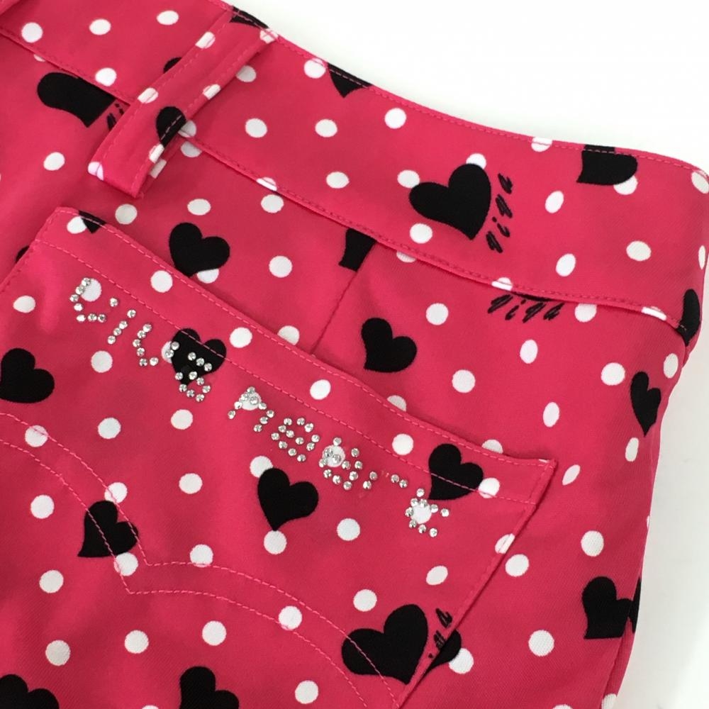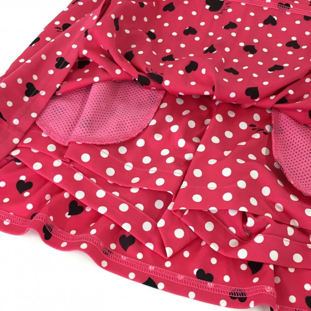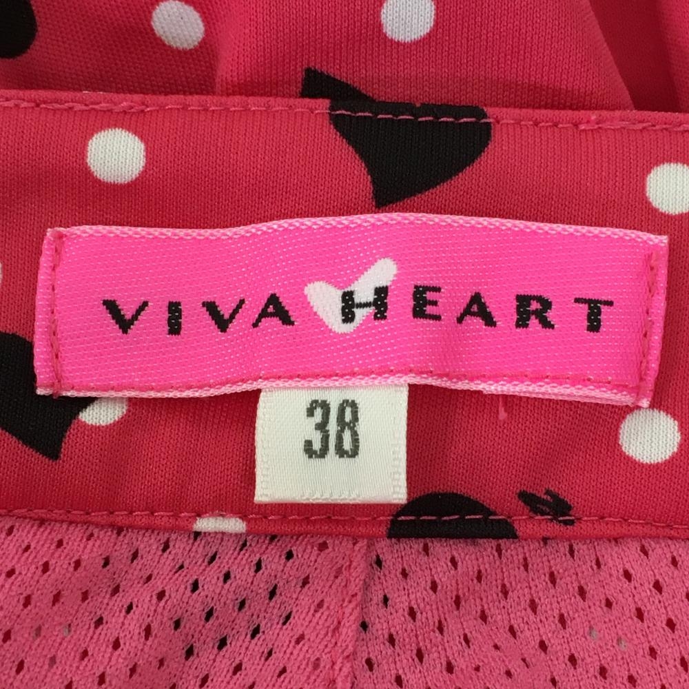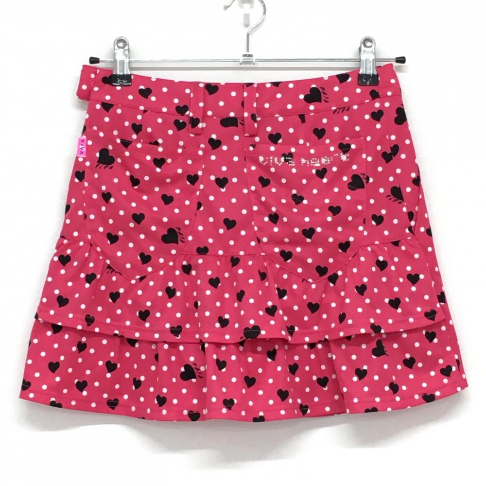 【美品】ビバハート スカート ピンク×白 ドット ハート柄 後ろ2段フリル レディース 38(S) ゴルフウェア VIVA HEART