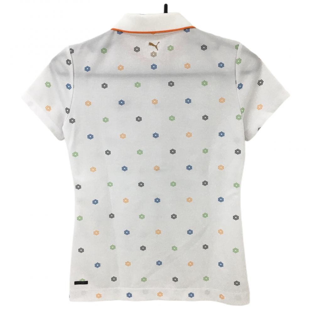 プーマ 半袖ポロシャツ 白×オレンジ 総柄 レディース S ゴルフウェア PUMA