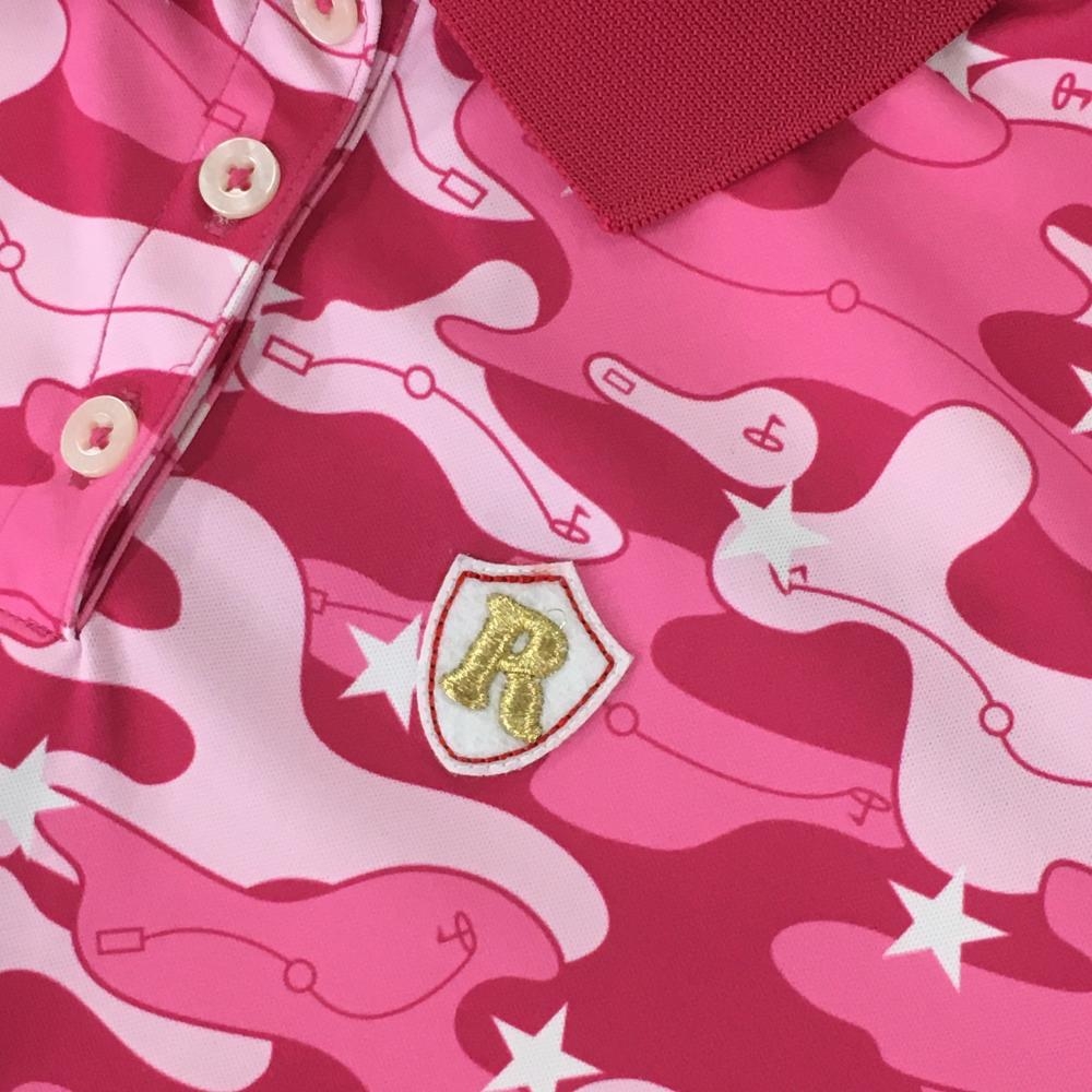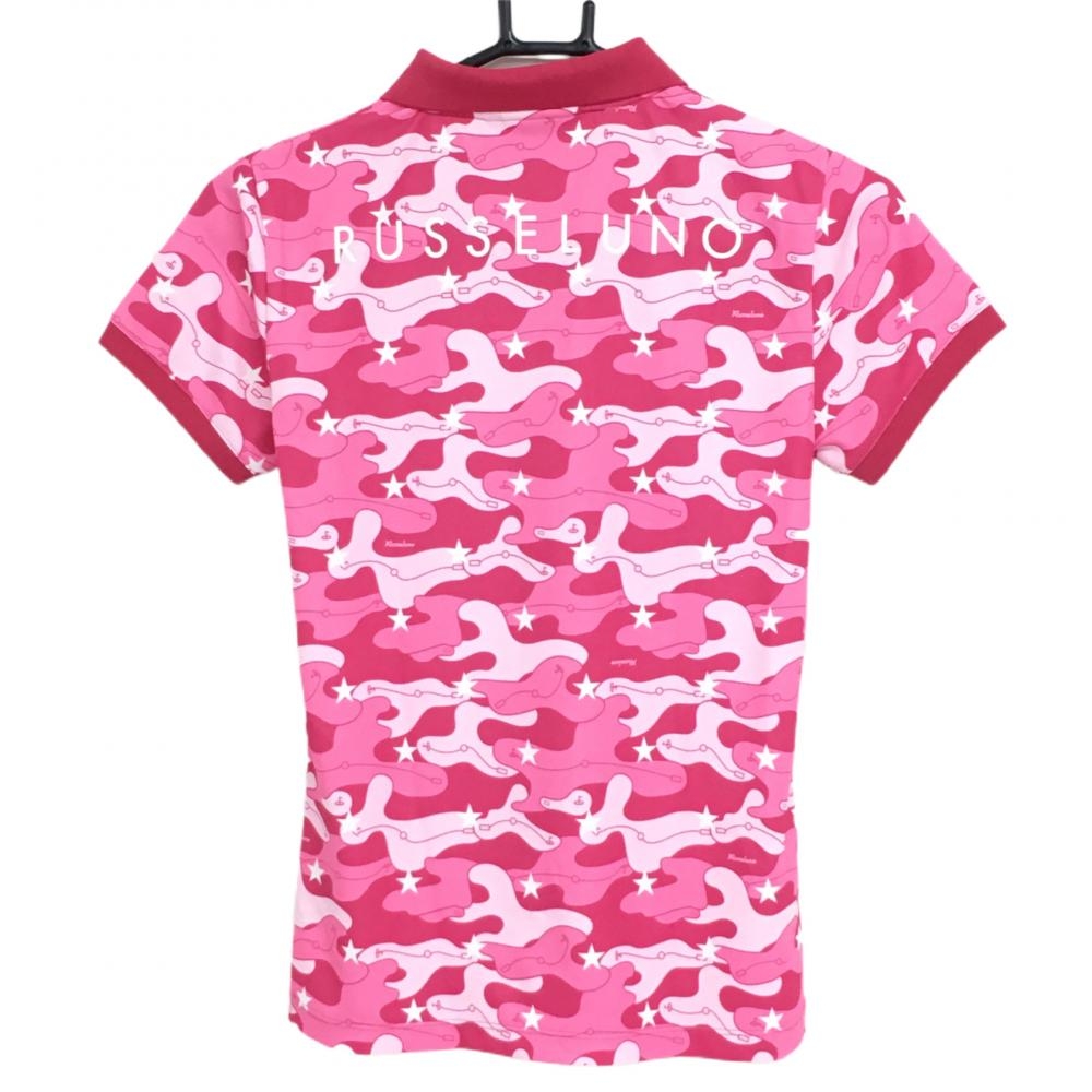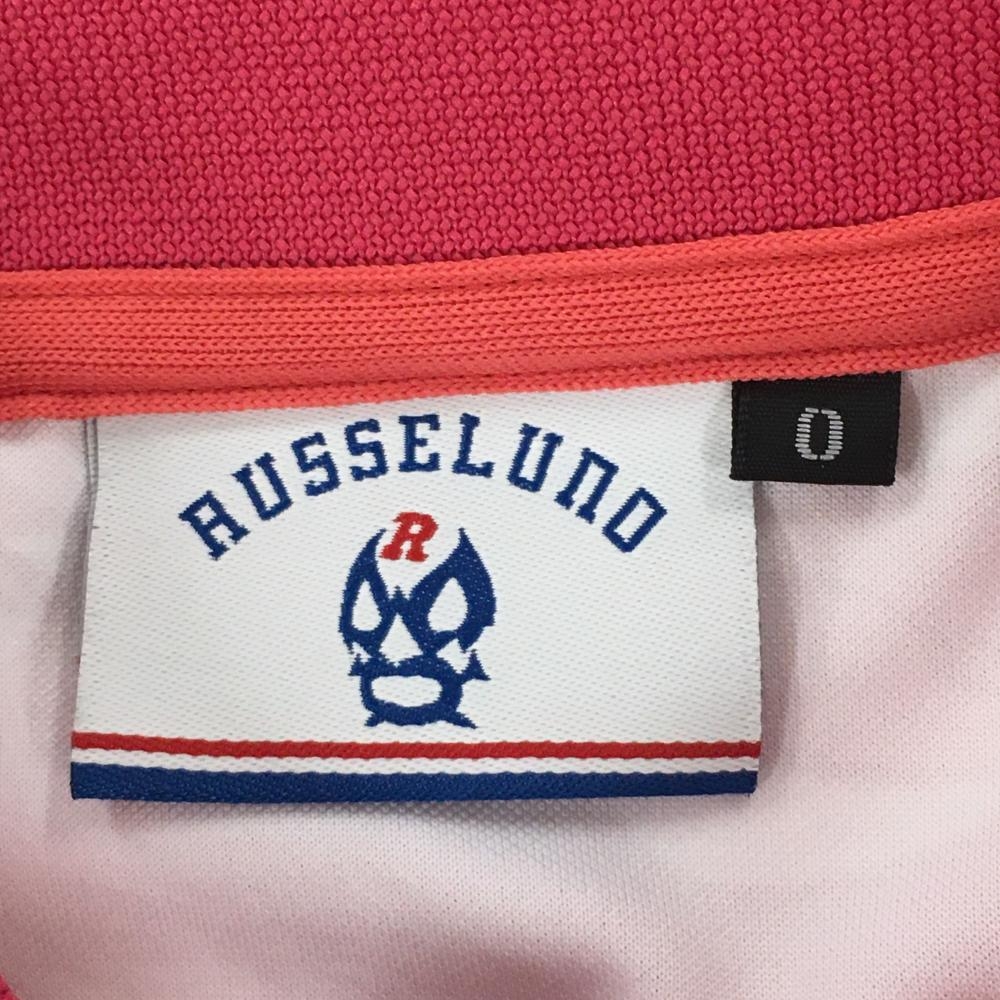【超美品】ラッセルノ 半袖ポロシャツ ピンク×ライトピンク 総柄 ロゴ刺しゅう レディース 0(S) ゴルフウェア RUSSELUNO
